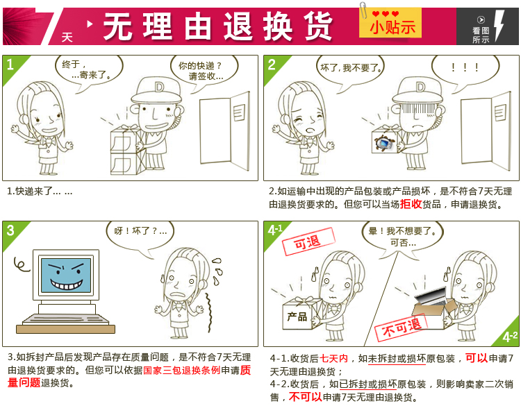 四:诚信是卖家的传统,理解是买家的美德。任何问题都可以协商,有任何问题都可以解决。对所购的产品有任何问题,联系我们,我们将帮您解决。