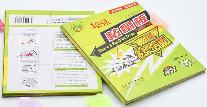 使用方法:1、取出包装袋,打开粘鼠板,可以按产品上面的折痕折成各种形状置于老鼠经常出没的地方。2、在粘板中央放些老鼠爱吃的食物如花生蛋糕饼干香肠等,可以引诱老鼠,增加捕鼠的成功率。3、捕获老鼠后,及时处理掉,以免造成环境污染。