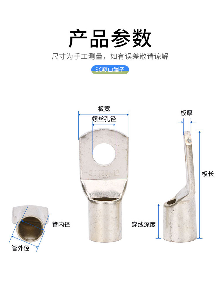 SC50 медный наконечник с утолщённым обзорным отверстием, клемма для кабеля, национальный стандарт с оловянным покрытием, морской холодной обжима