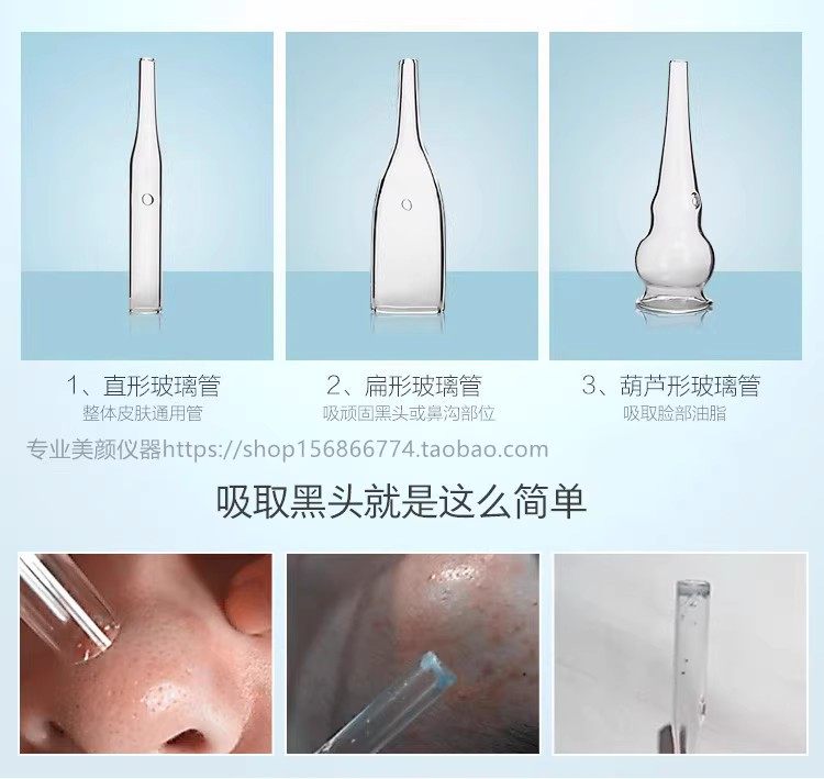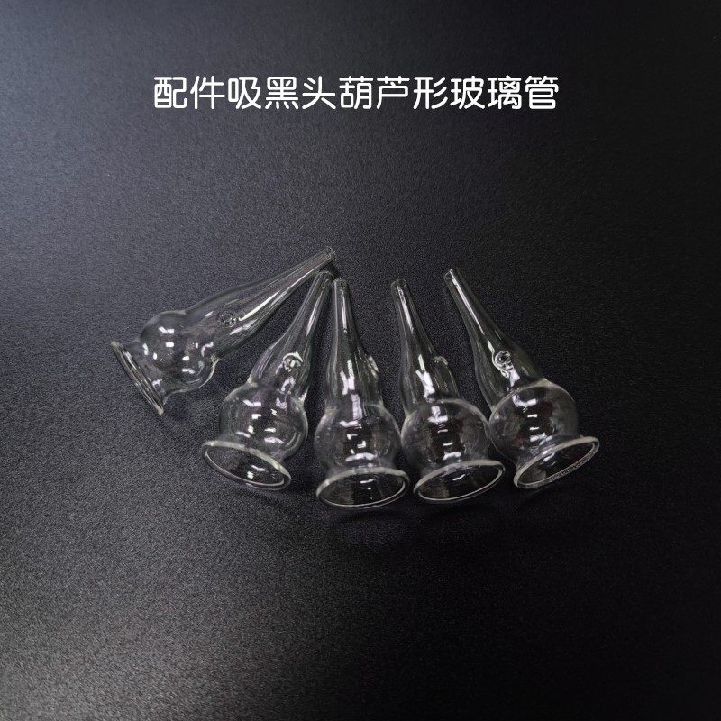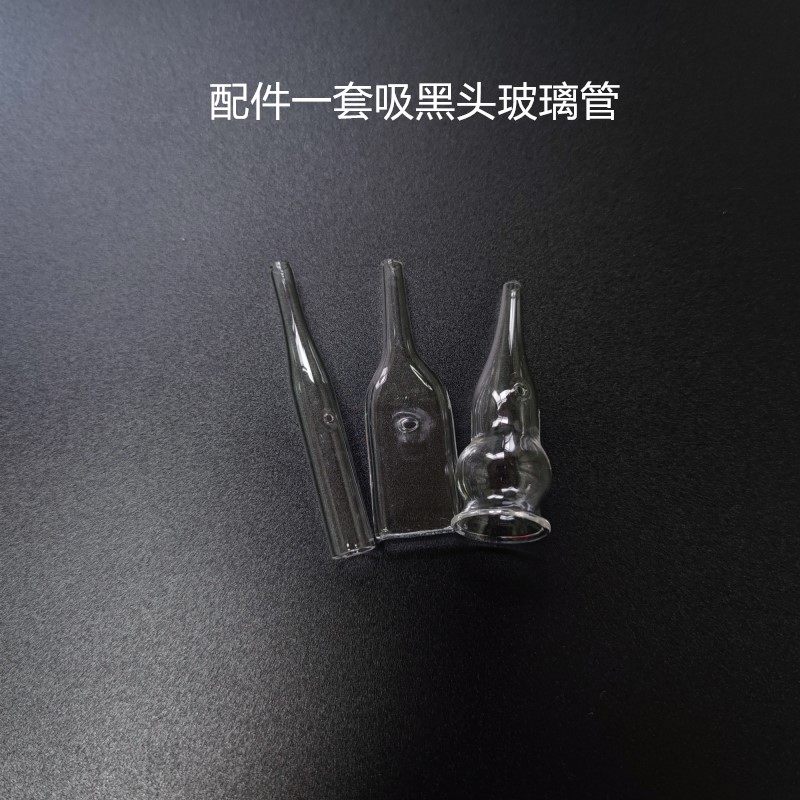 皮栓老化后会形成黑头撑大毛孔,并难以恢复,本款超强吸力,能将毛细孔中多余的脂肪、污垢等吸出。仪器配有三个玻璃管,分别为圆形,扁形,葫芦形,圆形为通用型,整体皮肤可用,扁形用于鼻沟部位,葫芦形用于面积较大的部位。