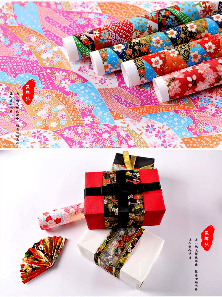 友禅纸是艺术纸的一种。它是在制作过程中使用了技巧,而使纸张呈现出精美的图案和花色,每一张友禅纸都像一幅精心绘制的画作,让人赏心悦目。友禅纸的应用也是相当广泛,比如用来制作笔记本的封面、制作个性手提袋,用来装饰纸箱、纸柜,或者是其他的生活用品,精致美观。 (温馨提示:本店仓库纸张5张以下折叠打包,为避免折叠发货会产生折痕,所以请亲在本店尽量凑满5张拍下) 尺寸:印面43*59厘米(白边尺寸45*61厘米)