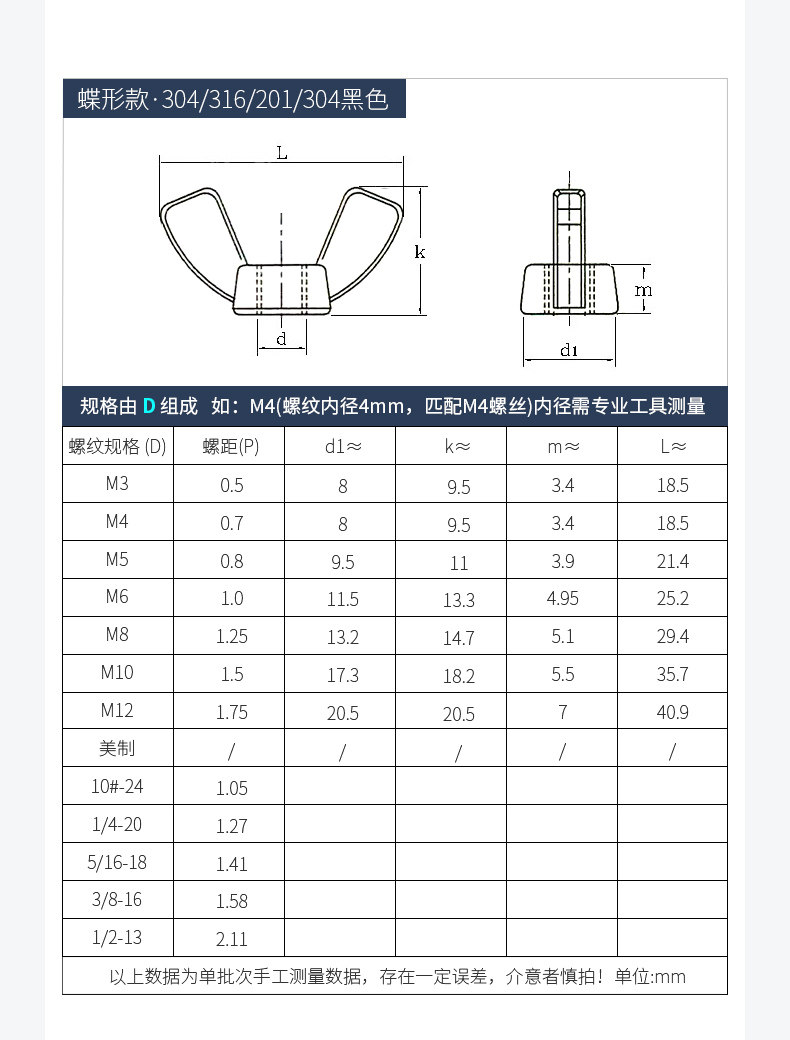 | Цветовые варианты | ✅▼ Ниже указаны спецификации крыльчатых гаек из нержавеющей стали ▼, M3 (20 шт) 304 крыло, M4 (20 шт) 304 крыло, M5 (20 шт) 304 крыло, M6 (20 шт) 304 крыло, M8 (10 шт) 304 крыло, M10 (10 шт) 304 крыло, M12 (5 шт) 304 крыло, M3 (20 шт) 316 крыло, M4 (20 шт) 316 крыло, M5 (20 шт) 316 крыло, M6 (10 шт) 316 крыло, M8 (10 шт) 316 крыло, M10 (5 шт) 316 крыло, M12 (2 шт) 316 крыло, M4 (50 шт) 201 крыло, M5 (50 шт) 201 крыло, M6 (20 шт) 201 крыло, M8 (20 шт) 201 крыло, M10 (10 шт) 201 крыло, M12 (5 шт) 201 крыло, M3 (20 шт) 304 черное крыло, M4 (20 шт) 304 черное крыло, M5 (20 шт) 304 черное крыло, M6 (10 шт) 304 черное крыло, M8 (10 шт) 304 черное крыло, M10 (5 шт) 304 черное крыло, M12 (2 шт) 304 черное крыло, ✅▼ Ниже указаны спецификации гаек-бабочек 304 ▼, M4 (5 шт) 304 гайка-бабочка, M5 (5 шт) 304 гайка-бабочка, M6 (5 шт) 304 гайка-бабочка, M8 (5 шт) 304 гайка-бабочка, M10 (2 шт) 304 гайка-бабочка, M12 (2 шт) 304 гайка-бабочка, M14 (2 шт) 304 гайка-бабочка, M16 (1 шт) 304 гайка-бабочка, M18 (1 шт) 304 гайка-бабочка, M20 (1 шт) 304 гайка-бабочка, M22 (1 шт) 304 гайка-бабочка, M24 (1 шт) 304 гайка-бабочка, ✅▼ Ниже указаны спецификации рогатых гаек 304 ▼, M6 (2 шт) 304 рогатая, M8 (2 шт) 304 рогатая, M10 (2 шт) 304 рогатая, M12 (2 шт) 304 рогатая, M14 (1 шт) 304 рогатая, M16 (1 шт) 304 рогатая, M18 (1 шт) 304 рогатая, M20 (1 шт) 304 рогатая, M22 (1 шт) 304 рогатая, M24 (1 шт) 304 рогатая, ✅▼ Ниже указаны спецификации гаек-бабочек по американскому стандарту ▼, 10#-24 (10 шт) американская гайка-бабочка, 1/4-20 (10 шт) американская гайка-бабочка, 5/16-18 (10 шт) американская гайка-бабочка, 3/8-16 (5 шт) американская гайка-бабочка, 1/2-13 (2 шт) американская гайка-бабочка, ✅▼ Ниже указаны спецификации крыльчатых гаек из углеродистой стали ▼, M3 (50 шт) белый цинк крыло, M4 (50 шт) белый цинк крыло, M5 (50 шт) белый цинк крыло, M6 (50 шт) белый цинк крыло, M8 (50 шт) белый цинк крыло, M10 (20 шт) белый цинк крыло, M12 (20 шт) белый цинк крыло, M3 (50 шт) черный цинк крыло, M4 (50 шт) черный цинк крыло, M5 (50 шт) черный цинк крыло, M6 (50 шт) черный цинк крыло, M8 (50 шт) черный цинк крыло, M10 (20 шт) черный цинк крыло, M12 (20 шт) черный цинк крыло, ✅▼ Ниже указаны спецификации британских гаек-бабочек ▼, 3/16-24 резьба (50 шт) британская гайка-бабочка, 1/4-20 резьба (50 шт) британская гайка-бабочка, 5/16-18 резьба (20 шт) британская гайка-бабочка, 3/8-16 резьба (20 шт) британская гайка-бабочка, 1/2-12 резьба (10 шт) британская гайка-бабочка, ✅▼ Ниже указаны спецификации латунных гаек-бабочек ▼, M3 (5 шт) латунная гайка-бабочка, M4 (5 шт) латунная гайка-бабочка, M5 (5 шт) латунная гайка-бабочка, M6 (5 шт) латунная гайка-бабочка, M8 (5 шт) латунная гайка-бабочка, M10 (2 шт) латунная гайка-бабочка, M12 (2 шт) латунная гайка-бабочка, ✅▼ Ниже указаны спецификации нейлоновых гаек-бабочек ▼, M3 (50 шт) белый нейлон, M4 (50 шт) белый нейлон, M5 (50 шт) белый нейлон, M6 (20 шт) белый нейлон, M8 (20 шт) белый нейлон, M10 (10 шт) белый нейлон, M12 (10 шт) белый нейлон, M3 (50 шт) черный нейлон, M4 (50 шт) черный нейлон, M5 (50 шт) черный нейлон, M6 (20 шт) черный нейлон, M8 (20 шт) черный нейлон, M10 (10 шт) черный нейлон, M12 (10 шт) черный нейлон |