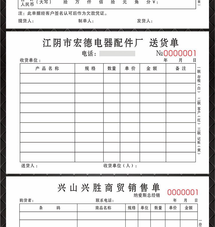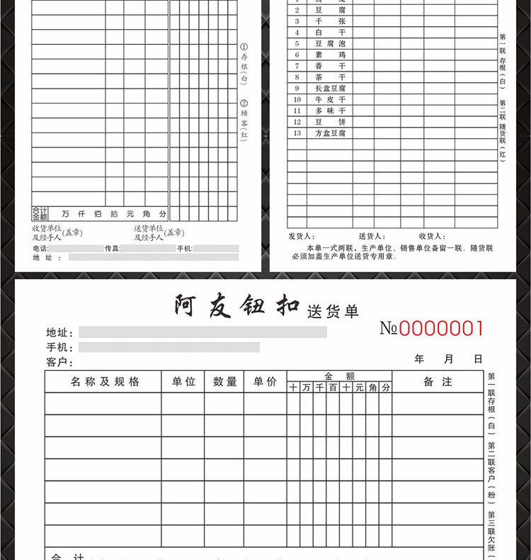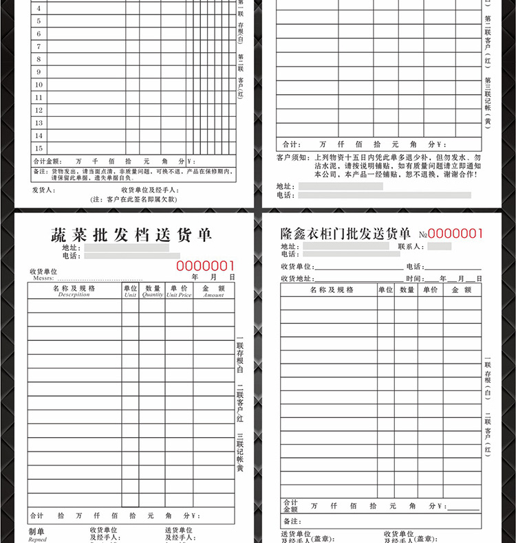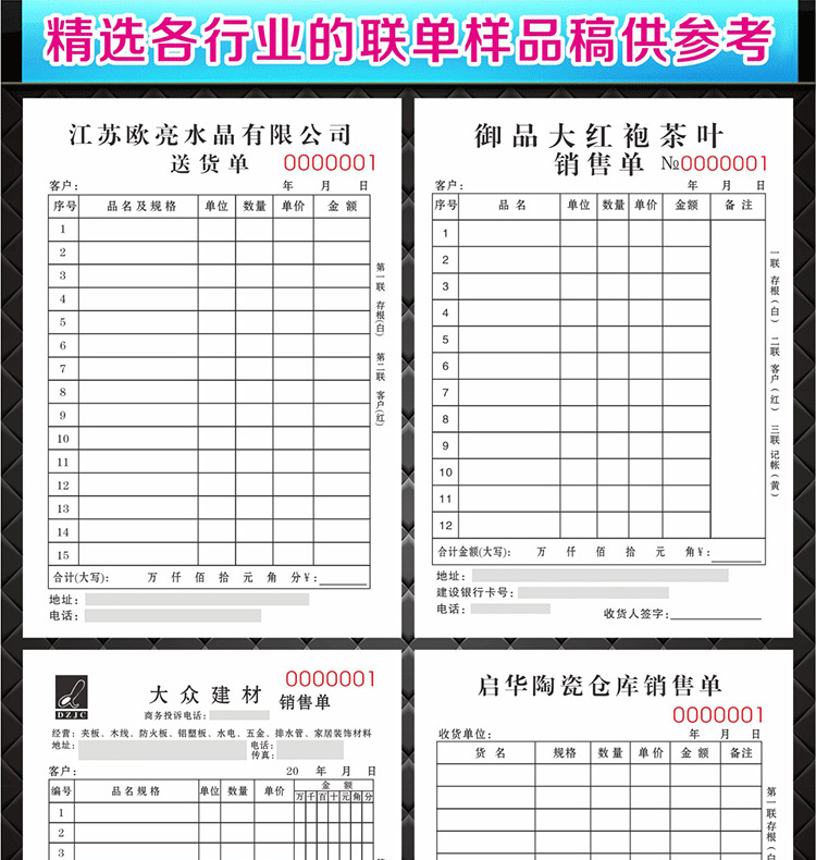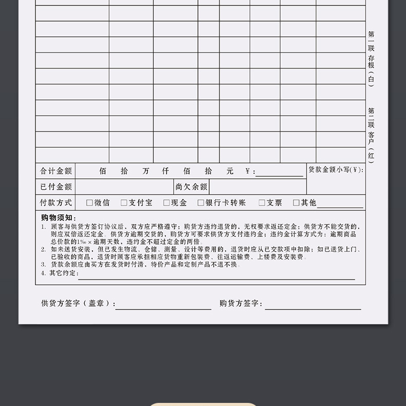 | Цветовые варианты | Товарная накладная/1 копия/100 листов/упаковка 10 шт., товарная накладная/2 копии/100 листов/упаковка 10 шт., товарная накладная/3 копии/90 листов/упаковка 10 шт., список продаж/2 копии/100 листов/упаковка 10 шт., список продаж/3 копии/90 листов/упаковка 10 шт., заказ на изготовление, товарная накладная/2 копии/10 упаковок с деревянной доской для зажима, товарная накладная/3 копии/10 упаковок с деревянной доской для зажима, список продаж/2 копии/10 упаковок с деревянной доской для зажима, список продаж/3 копии/10 упаковок с деревянной доской для зажима, заказ/2 копии/100 листов/упаковка 5 шт., заказ/3 копии/90 листов/упаковка 5 шт., квитанция/2 копии/100 листов/упаковка 10 шт., квитанция/3 копии/90 листов/упаковка 10 шт., товарная накладная/4 копии/100 листов/упаковка 10 шт., список продаж/4 копии/100 листов/упаковка 10 шт., фиксированный заказ на продажу/2 копии/100 листов/упаковка 5 шт., фиксированный заказ на продажу/3 копии/90 листов/упаковка 5 шт., маркировочный лист (горизонтальный)/2 копии/10 упаковок с деревянной доской для зажима, одноколоночная квитанция/3 копии/90 листов/упаковка 10 шт., приходный ордер/2 копии/100 листов/упаковка 10 шт., приходный ордер/3 копии/90 листов/упаковка 10 шт., расходный ордер/2 копии/100 листов/упаковка 10 шт., [универсальный] квитанция/2 копии/100 листов/упаковка 2 шт. |