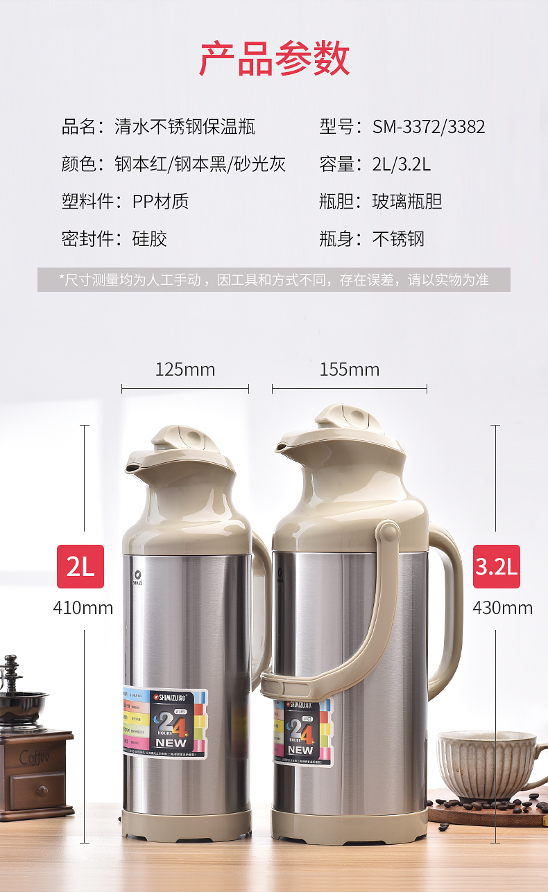 Домашний термос для горячей воды Qingshui из нержавеющей стали 5 фунтов большой ёмкости 8P стеклянная кружка 3.2