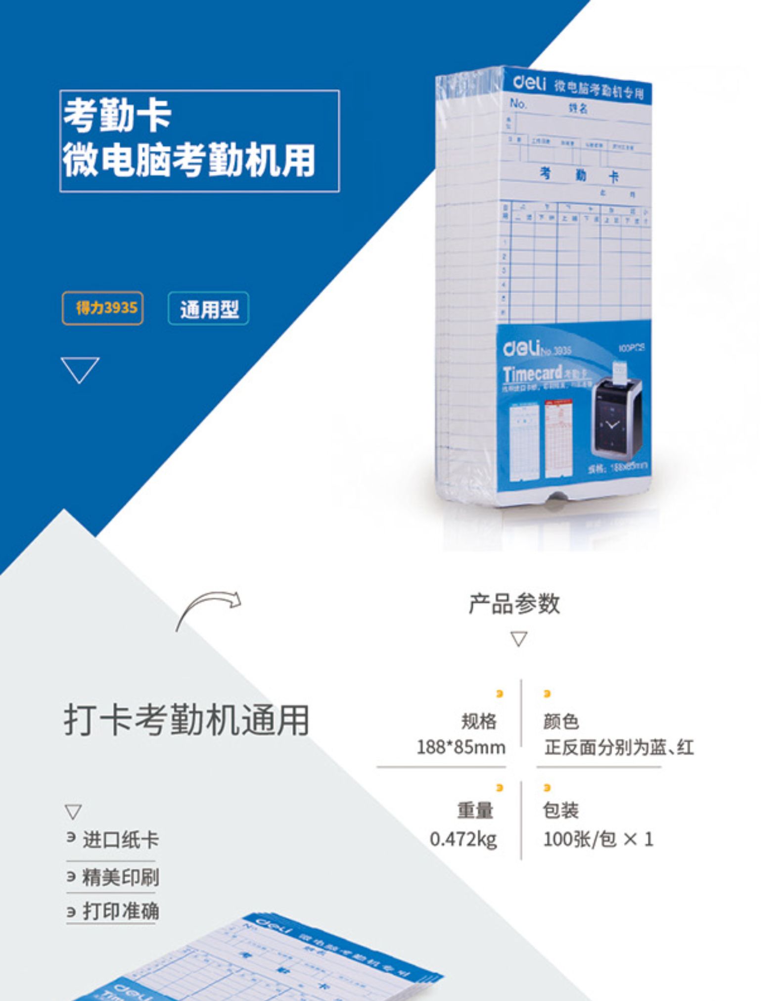 100 шт. бумага для табелей учета рабочего времени Deli, утолщенная, белая, универсальная для микрокомпьютерных ручных устройств