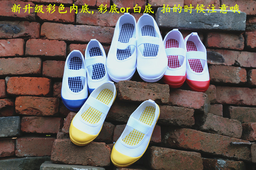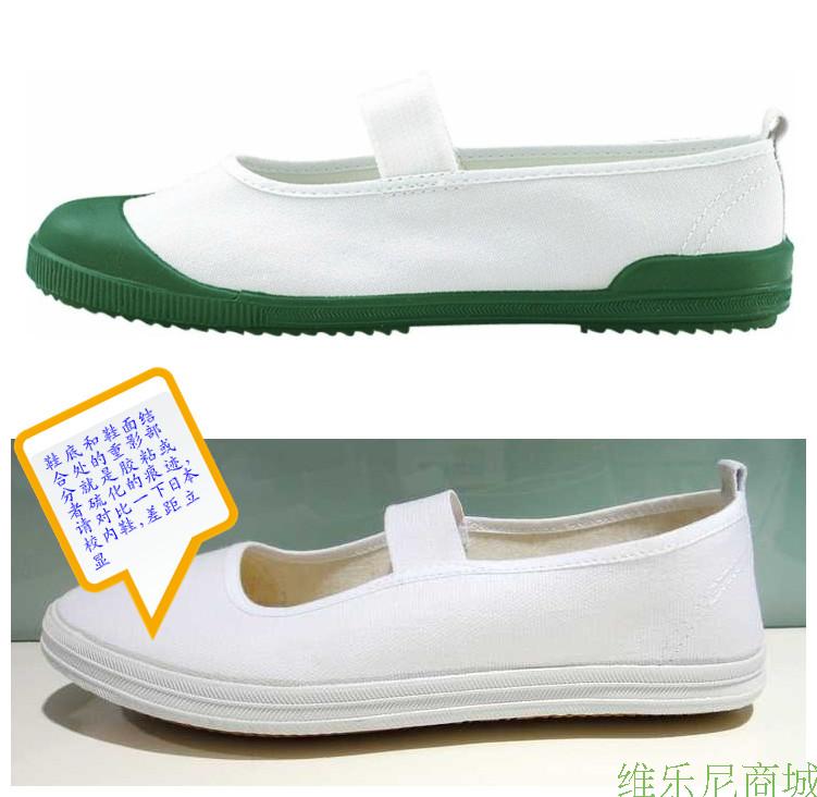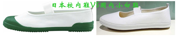 功能;日式学生鞋由于采用注塑工艺,鞋底材料抓地效果好而且柔韧,可以用来跳舞,体操,运动,踢球。。。而且前头有专门的护脚趾设计。防撞防踢。国内的小白 鞋,在这方面有明显的不足