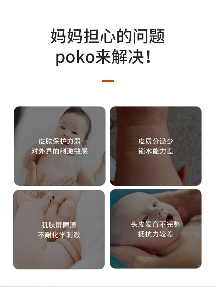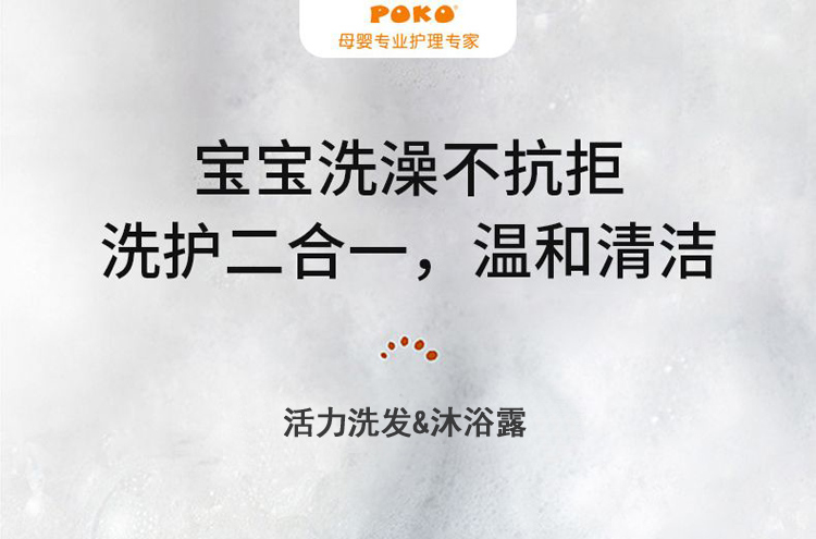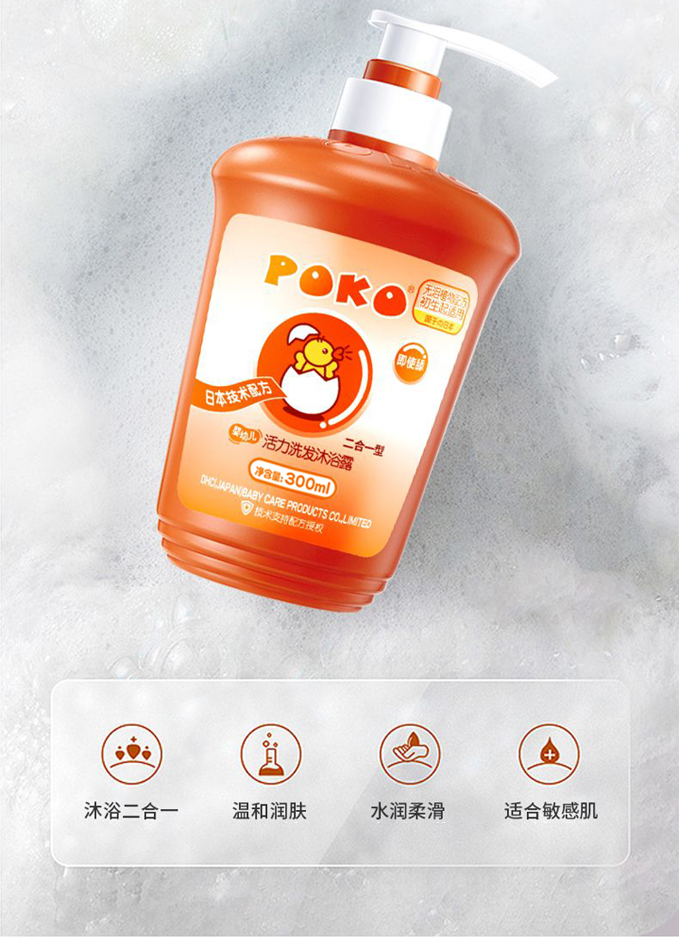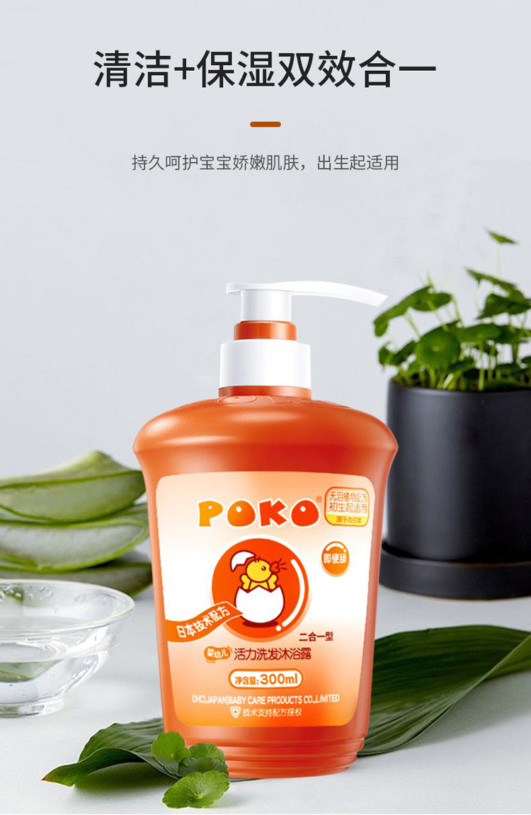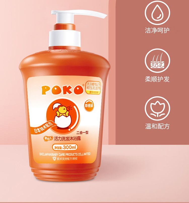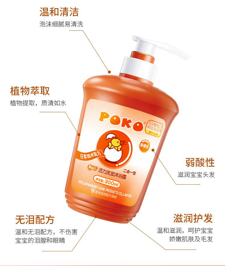 Детский шампунь и гель для мытья тела POKO 2-в-1 300мл для новорождённых без силикона бережная формула без слез