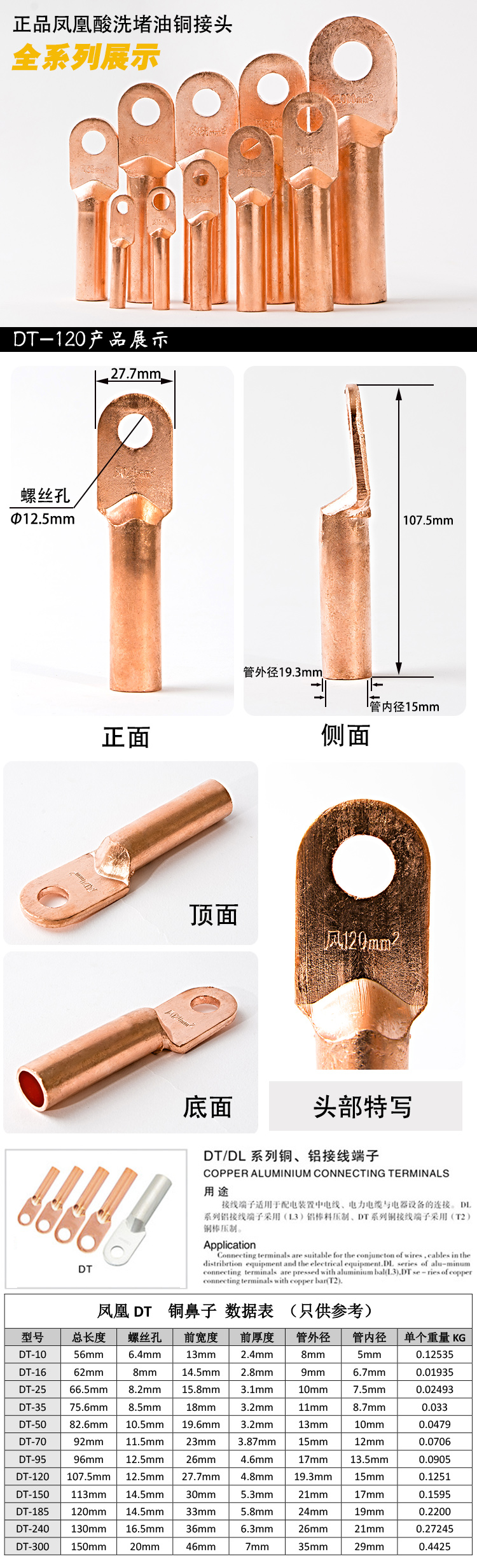 Медный наконечник Phoenix с кислотной промывкой и маслозапиранием DT-120MM2 (квадрат) Медный разъем, класс B