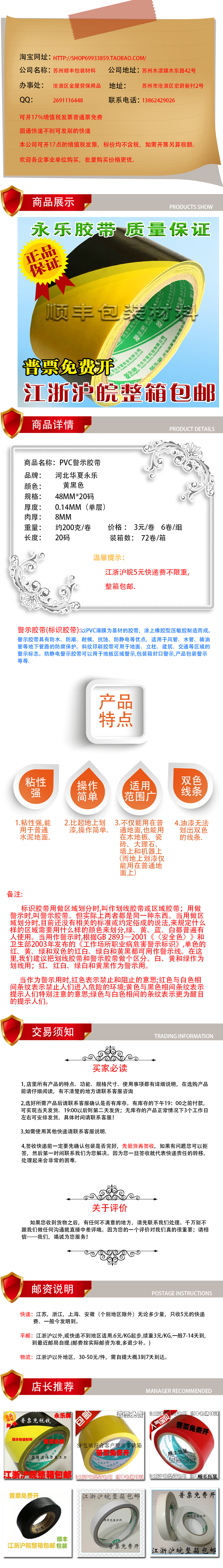 Лента предупреждающая PVC Yongle желто-черная, зебра, разметочная лента для пола шириной 4.8 см