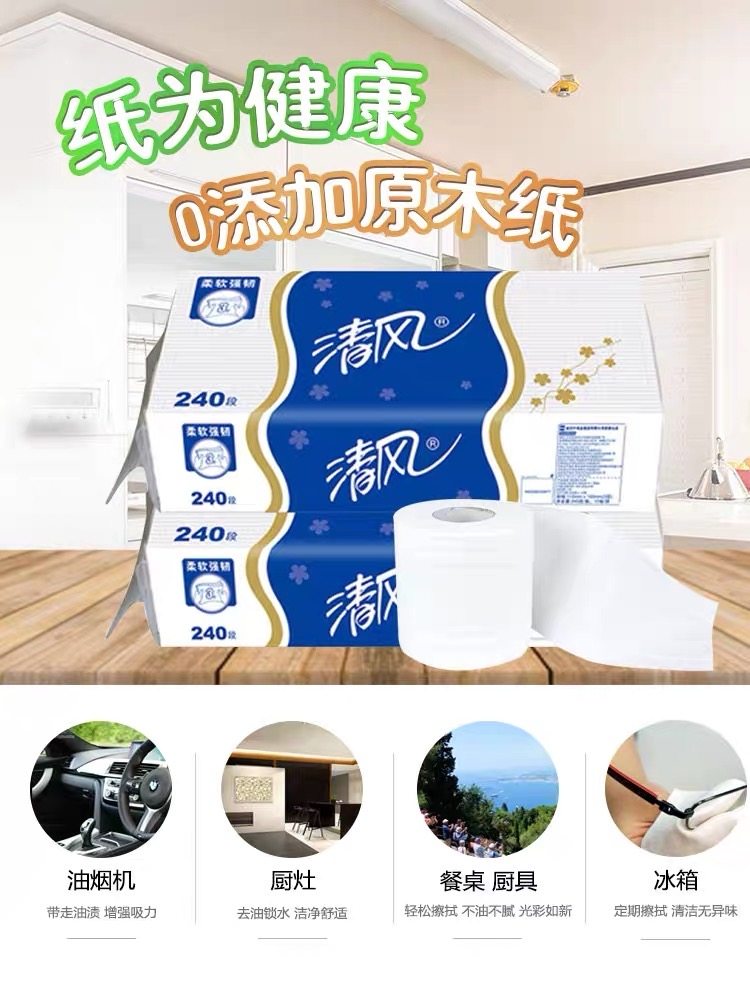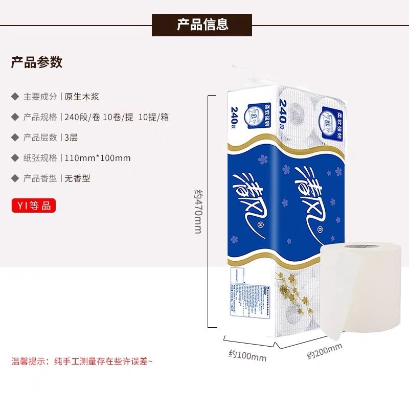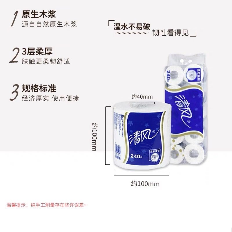 Туалетная бумага Qingfeng 240 листов, 3 слоя, упаковка 10 пачек, 100 рулонов, бесплатная доставка по Цзянсу, Чжэцзяну и Шанхаю, бытовая туалетная бумага B22AT3B
