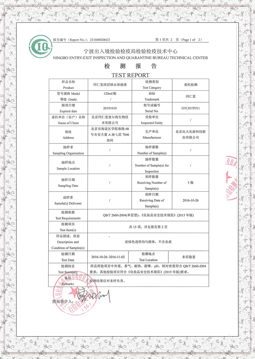 | Номер производственной лицензии | Производственная лицензия Пекин косметика 20160011 |