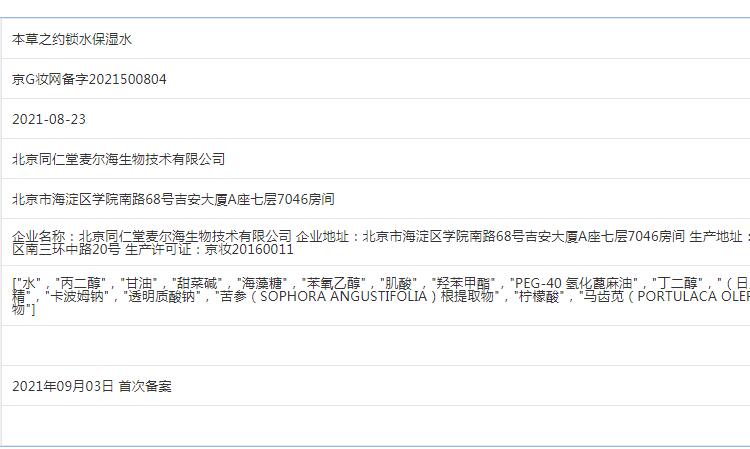 | Регистрационный номер косметики | Регистрационный номер косметики Пекин G 2021500804 |