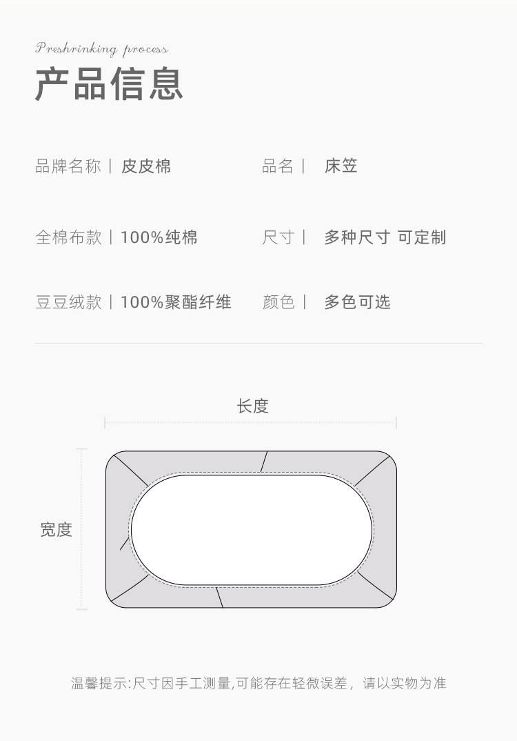 | Размер | Детская простыня (140*90), кровать 150*80 (простыня 170*100), кровать 200*80 (простыня 220*100), натяжная простыня (90*50*5), кровать 200*100 (простыня 220*120), натяжная простыня (100*56*5), натяжная простыня (105*60*5), натяжная простыня (110*60*5), натяжная простыня (110*65*5), натяжная простыня (115*65*5), натяжная простыня (120*60*5), натяжная простыня (120*65*5), натяжная простыня (120*70*5), натяжная простыня (140*70*5), натяжная простыня (150*60*5), натяжная простыня (150*70*5), натяжная простыня (150*80*5), натяжная простыня (180*60*5), натяжная простыня (180*80*5), натяжная простыня (180*100*5), натяжная простыня (200*60*5), натяжная простыня (200*80*5), натяжная простыня (200*100*5), индивидуальные размеры, свяжитесь со службой поддержки |