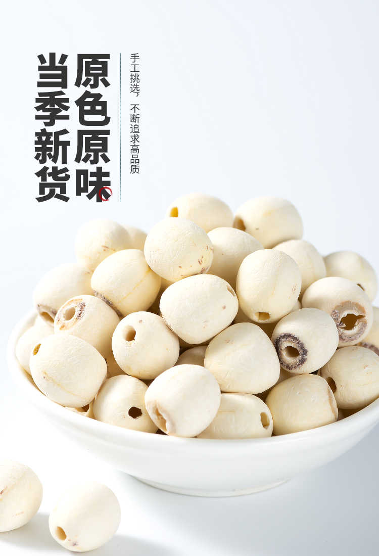 Сушеные семена лотоса Xun Baicao 500 г - очищенные свежие белые семена лотоса с эриалисом, порией, ямсом для супа Четырех Трав