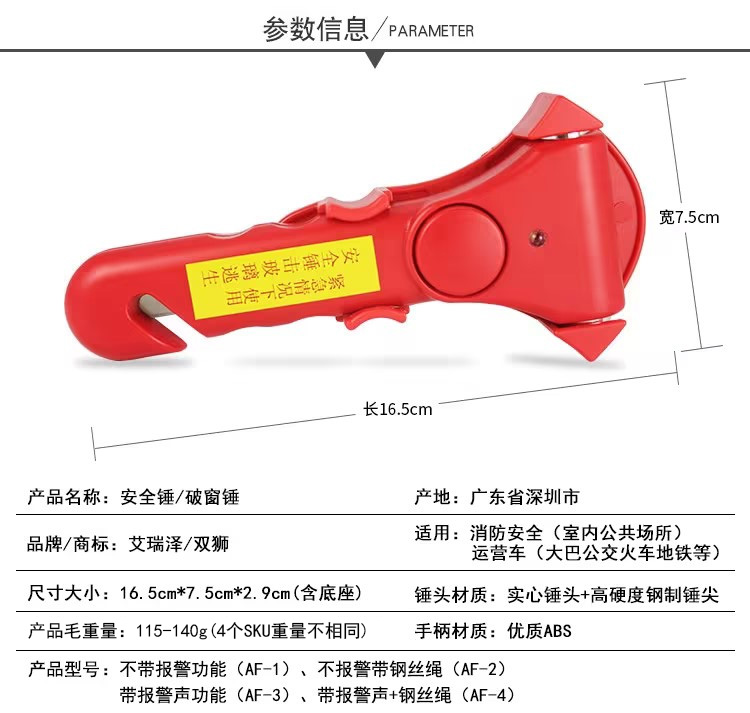 安全锤出厂不带螺丝,需要螺丝等配件可以下单后面4个sku选项,带螺丝或贴纸(不明白咨询客服)。