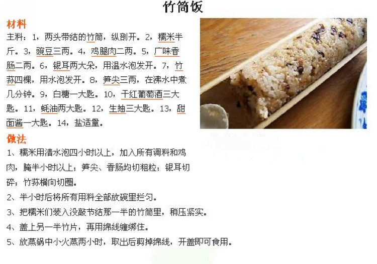 这是本店一位顾客做的竹筒饭哦,大家可以参考下,看着都有食欲,味道一定很好吧