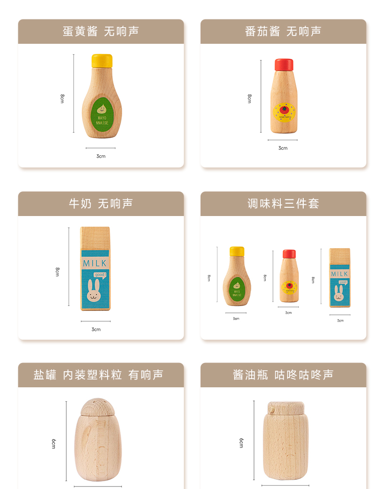 | Цветовые варианты | Набор из 5 приправ, Майонез (без звука), Кетчуп (без звука), Молоко (без звука), Бутылка с соевым соусом (звук бульканья), Солонка (с пластиковыми гранулами, есть звук), Набор из 3 приправ, Солонка и бутылка с соевым соусом (со звуком), Солонка из натурального дерева (без звука), Набор из 7 приправ, Новая розовая солонка, Новая кофейная солонка, Новая голубая солонка, Новая белая солонка, Новая белая бутылка с соевым соусом, Новая голубая бутылка с соевым соусом, Новая кофейная бутылка с соевым соусом, Новая белая перечница, Новая белая бутылка с соевым соусом, Новая розовая перечница, Новая розовая бутылка с соевым соусом, Новая синяя перечница, Новая синяя бутылка с соевым соусом, Новая кофейная перечница, Новая кофейная бутылка с соевым соусом |