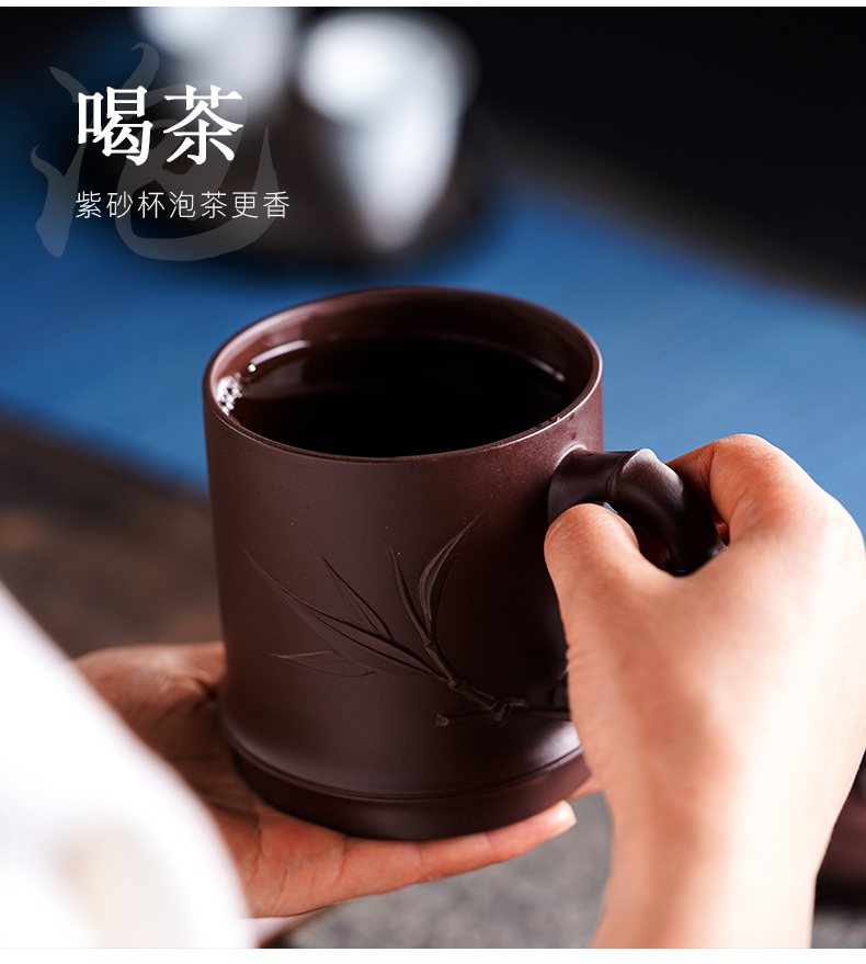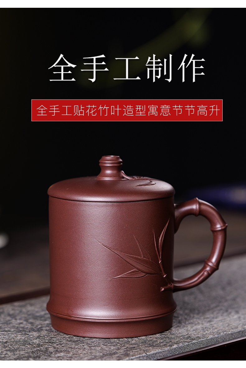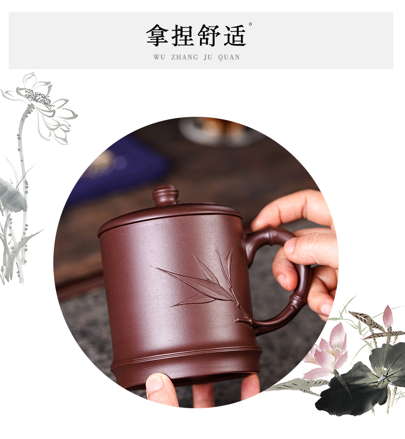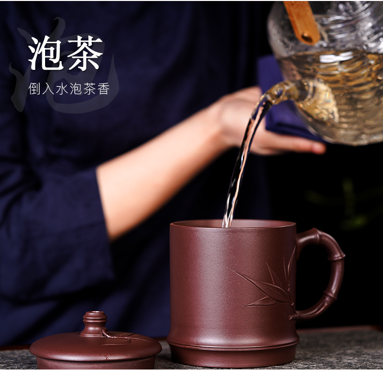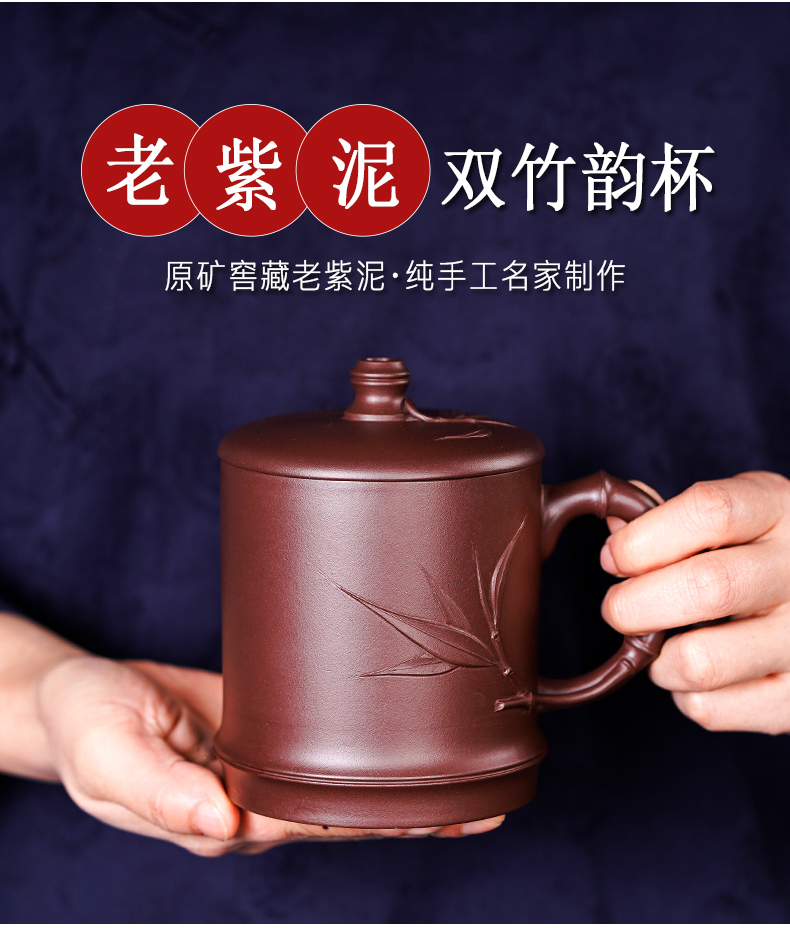 Чашка с крышкой из исинской пурпурной глины ручной работы для мужчин, китайская оригинальная старая пурпурная глина, дизайн с двойным бамбуком, 500 мл