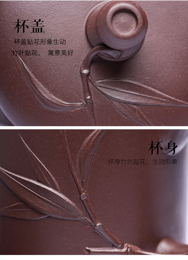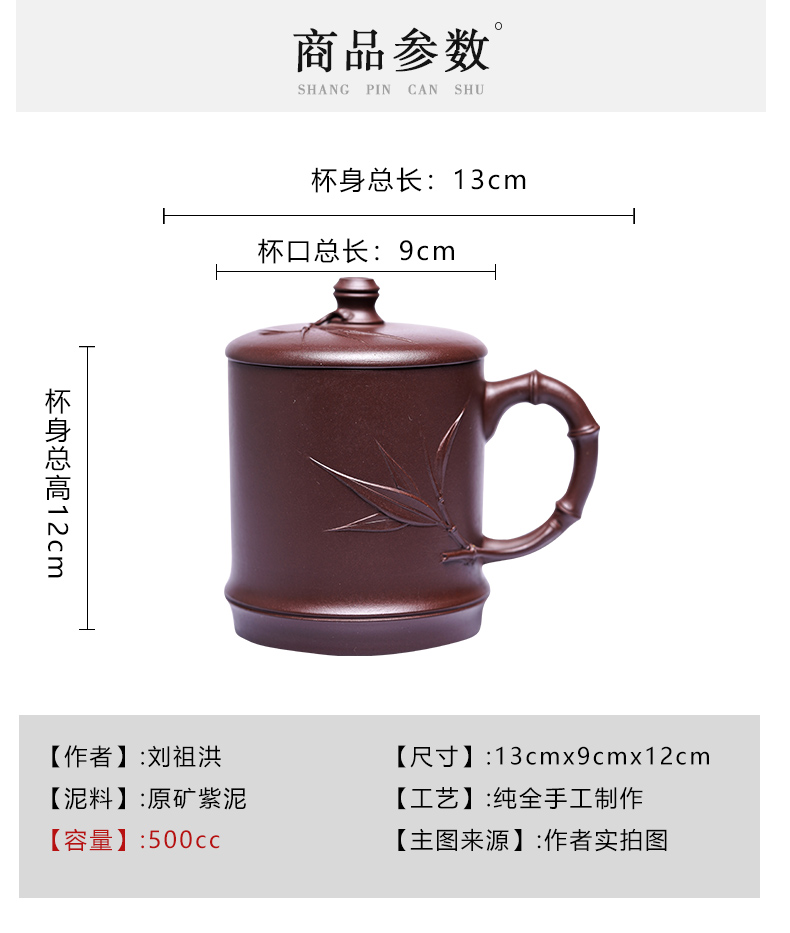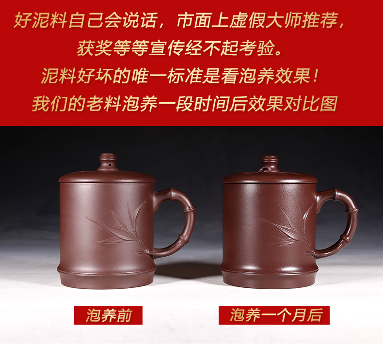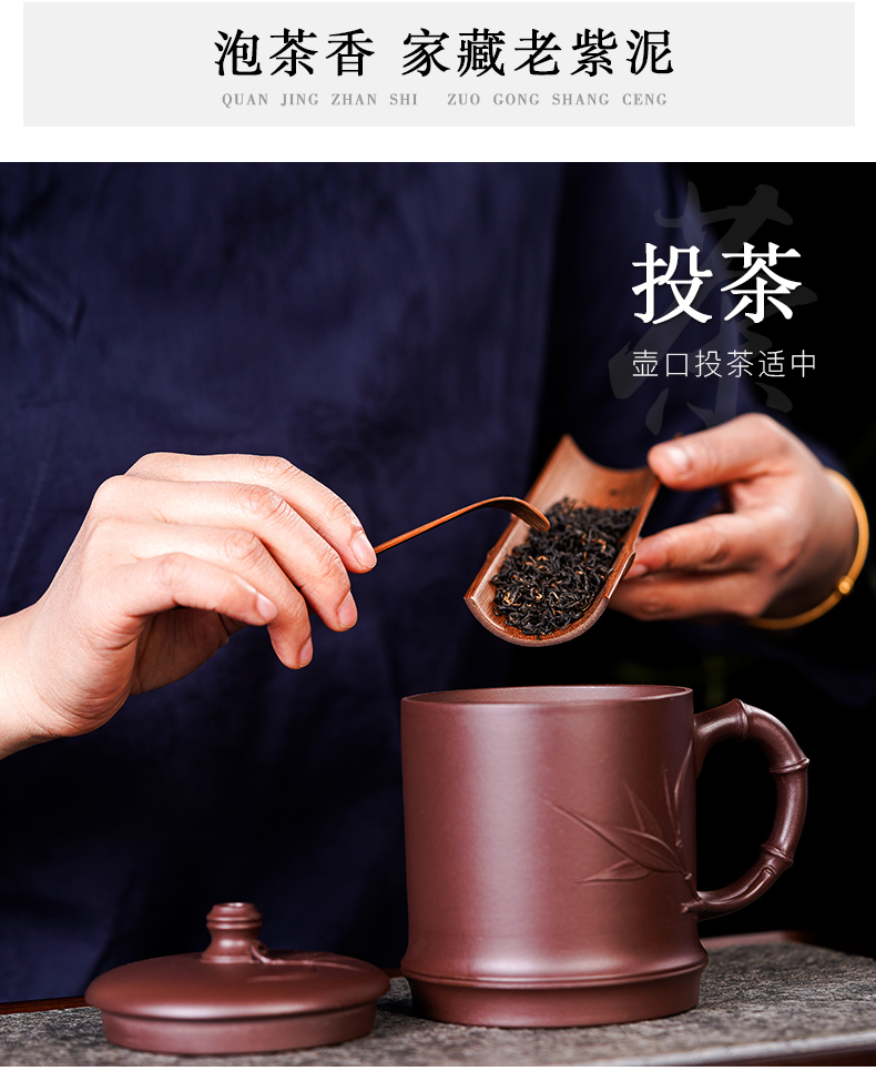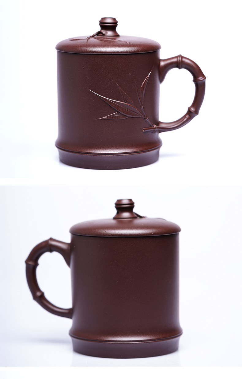 Чашка с крышкой из исинской пурпурной глины ручной работы для мужчин, китайская оригинальная старая пурпурная глина, дизайн с двойным бамбуком, 500 мл