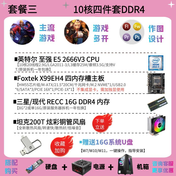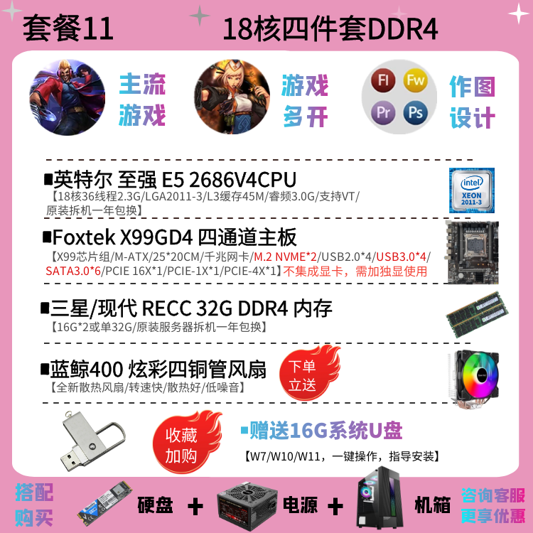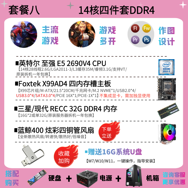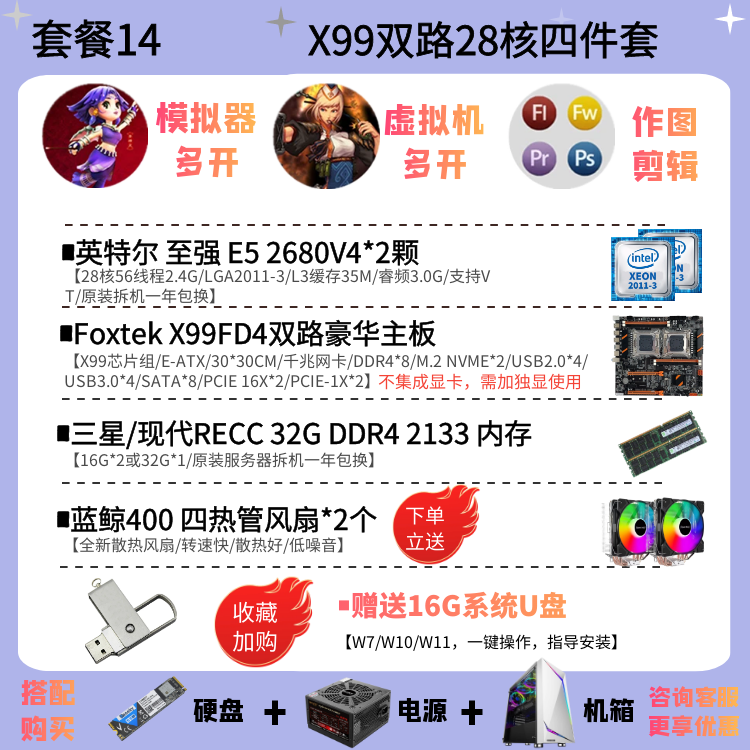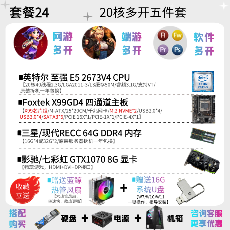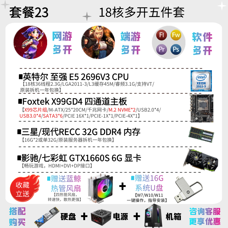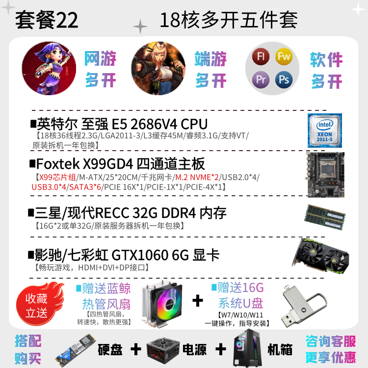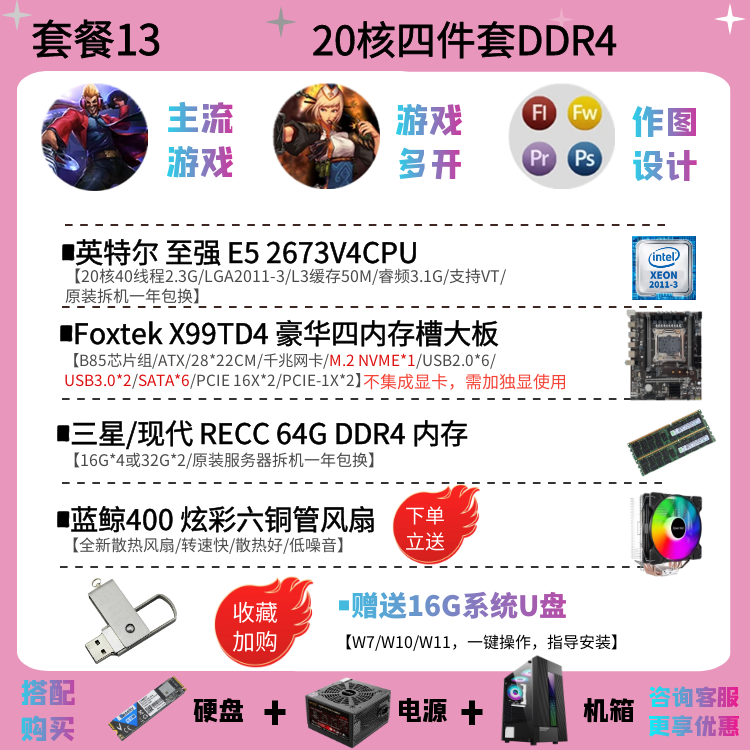 | Цветовые варианты | 10-ядерный процессор 2630V4 + материнская плата X99EH4 + 16ГБ DDR4 памяти с вентилятором, 12-ядерный процессор 2676V3 + материнская плата X99EH4 + 16ГБ DDR4 памяти с вентилятором, 10-ядерный процессор 2666V3 + материнская плата X99EH4 + 16ГБ DDR4 памяти с вентилятором, 12-ядерный процессор 2680V3 + материнская плата X99EH4 + 16ГБ DDR4 памяти с вентилятором, 10-ядерный процессор 2666V3 + материнская плата X99AD4 + 32ГБ DDR4 памяти с вентилятором, 12-ядерный процессор 2690V3 + материнская плата X99AD4 + 32ГБ DDR4 памяти с вентилятором, 14-ядерный процессор 2680V4 + материнская плата X99AD4 + 32ГБ DDR4 памяти с вентилятором, 14-ядерный процессор 2690V4 + материнская плата X99AD4 + 32ГБ DDR4 памяти с вентилятором, 16-ядерный процессор 2698V3 + материнская плата X99AD4 + 32ГБ DDR4 памяти с вентилятором, 16-ядерный процессор 2682V4 + материнская плата X99AD4 + 32ГБ DDR4 памяти с вентилятором, 18-ядерный процессор 2686V4 + материнская плата X99GD4 + 32ГБ DDR4 памяти с вентилятором, 18-ядерный процессор 2696V3 + материнская плата X99GD4 + 32ГБ DDR4 памяти с вентилятором, 20-ядерный процессор 2673V4 + большая плата X99TD4 + 64ГБ DDR4 памяти с вентилятором, двухпроцессорная система с 28-ядерным 2680V4 *2 + материнская плата X99FD4 + 32ГБ DDR4 памяти с вентилятором, двухпроцессорная система с 36-ядерным 2696V3 *2 + материнская плата X99FD4 + 64ГБ DDR4 памяти с вентилятором, (с дискретной графикой) 12-ядерный 2673V3 / материнская плата X99EH4 / 16ГБ памяти / 1ГБ видеокарта для теста / с вентилятором, (с дискретной графикой) 12-ядерный 2680V3 / материнская плата X99EH4 / 16ГБ памяти / GTX950 2ГБ / с вентилятором, (с дискретной графикой) 12-ядерный 2690V3 / материнская плата X99EH4 / 16ГБ памяти / GTX960 2ГБ / с вентилятором, (с дискретной графикой) 14-ядерный 2680V4 / материнская плата X99AD4 / 32ГБ памяти / GTX960 4ГБ / с вентилятором, (с дискретной графикой) 10-ядерный 2666V3 / материнская плата X99AD4 / 32ГБ памяти / GTX1060 3ГБ / с вентилятором, (с дискретной графикой) 16-ядерный 2682V4 / материнская плата X99AD4 / 32ГБ памяти / GTX1060 5ГБ / с вентилятором, (с дискретной графикой) 18-ядерный 2686V4 / материнская плата X99GD4 / 32ГБ памяти / GTX1060 6ГБ / с вентилятором, (с дискретной графикой) 18-ядерный 2696V3 / материнская плата X99GD4 / 32ГБ памяти / GTX1660S 6ГБ / с вентилятором, (с дискретной графикой) 20-ядерный 2673V4 / материнская плата X99GD4 / 64ГБ памяти / GTX1070 8ГБ / с вентилятором |