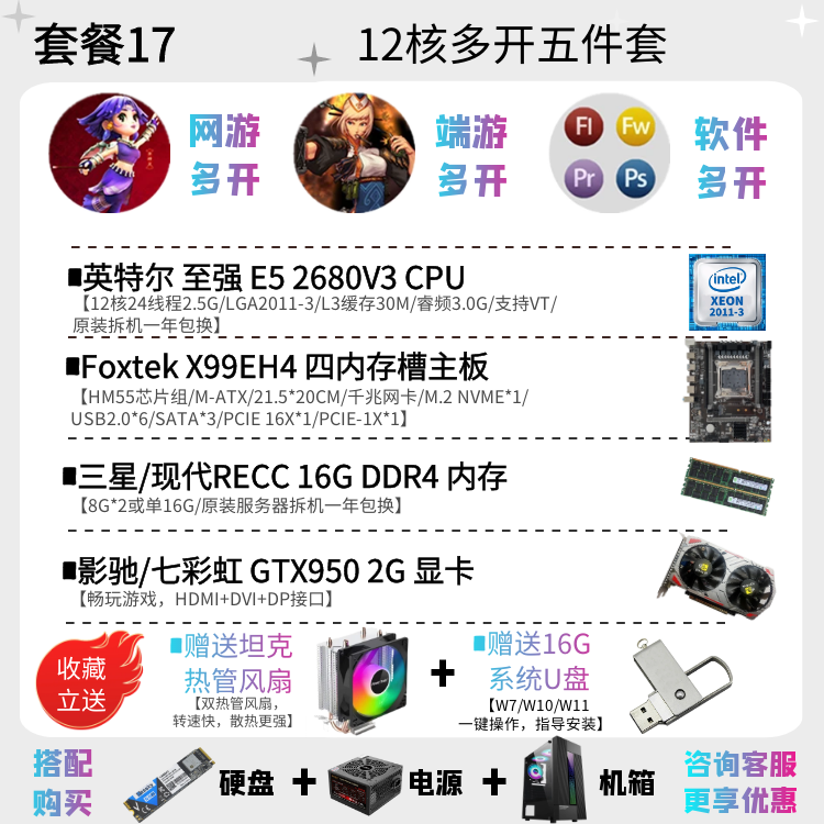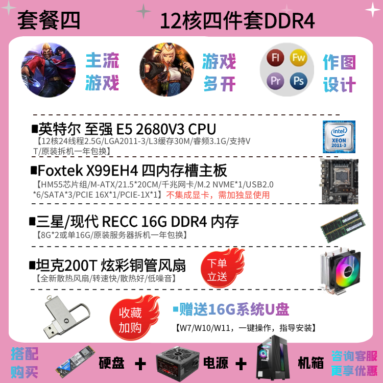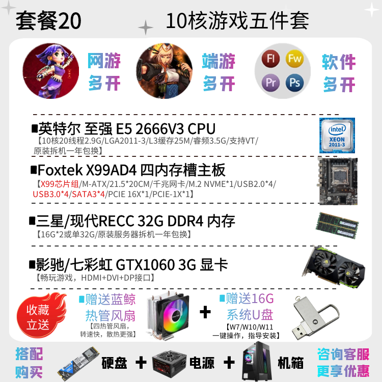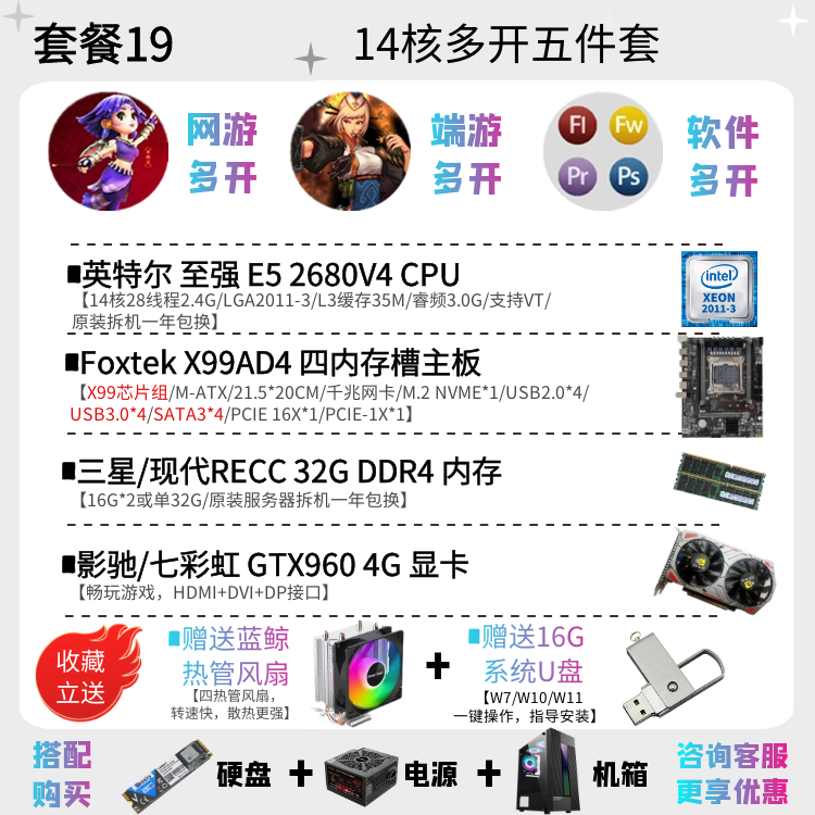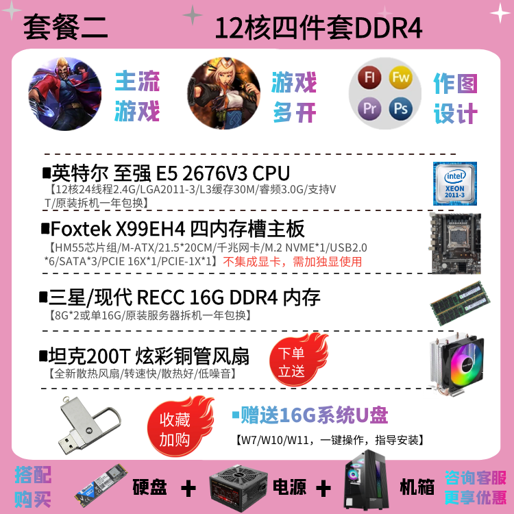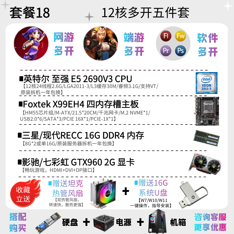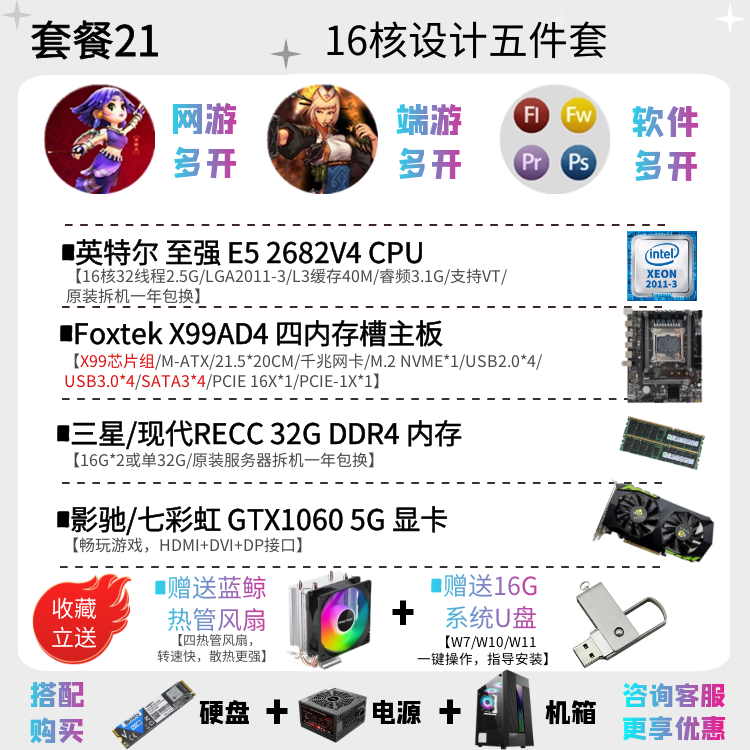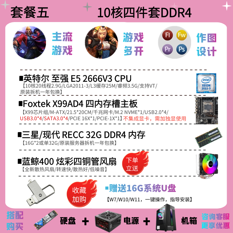 | Цветовые варианты | 10-ядерный процессор 2630V4 + материнская плата X99EH4 + 16ГБ DDR4 памяти с вентилятором, 12-ядерный процессор 2676V3 + материнская плата X99EH4 + 16ГБ DDR4 памяти с вентилятором, 10-ядерный процессор 2666V3 + материнская плата X99EH4 + 16ГБ DDR4 памяти с вентилятором, 12-ядерный процессор 2680V3 + материнская плата X99EH4 + 16ГБ DDR4 памяти с вентилятором, 10-ядерный процессор 2666V3 + материнская плата X99AD4 + 32ГБ DDR4 памяти с вентилятором, 12-ядерный процессор 2690V3 + материнская плата X99AD4 + 32ГБ DDR4 памяти с вентилятором, 14-ядерный процессор 2680V4 + материнская плата X99AD4 + 32ГБ DDR4 памяти с вентилятором, 14-ядерный процессор 2690V4 + материнская плата X99AD4 + 32ГБ DDR4 памяти с вентилятором, 16-ядерный процессор 2698V3 + материнская плата X99AD4 + 32ГБ DDR4 памяти с вентилятором, 16-ядерный процессор 2682V4 + материнская плата X99AD4 + 32ГБ DDR4 памяти с вентилятором, 18-ядерный процессор 2686V4 + материнская плата X99GD4 + 32ГБ DDR4 памяти с вентилятором, 18-ядерный процессор 2696V3 + материнская плата X99GD4 + 32ГБ DDR4 памяти с вентилятором, 20-ядерный процессор 2673V4 + большая плата X99TD4 + 64ГБ DDR4 памяти с вентилятором, двухпроцессорная система с 28-ядерным 2680V4 *2 + материнская плата X99FD4 + 32ГБ DDR4 памяти с вентилятором, двухпроцессорная система с 36-ядерным 2696V3 *2 + материнская плата X99FD4 + 64ГБ DDR4 памяти с вентилятором, (с дискретной графикой) 12-ядерный 2673V3 / материнская плата X99EH4 / 16ГБ памяти / 1ГБ видеокарта для теста / с вентилятором, (с дискретной графикой) 12-ядерный 2680V3 / материнская плата X99EH4 / 16ГБ памяти / GTX950 2ГБ / с вентилятором, (с дискретной графикой) 12-ядерный 2690V3 / материнская плата X99EH4 / 16ГБ памяти / GTX960 2ГБ / с вентилятором, (с дискретной графикой) 14-ядерный 2680V4 / материнская плата X99AD4 / 32ГБ памяти / GTX960 4ГБ / с вентилятором, (с дискретной графикой) 10-ядерный 2666V3 / материнская плата X99AD4 / 32ГБ памяти / GTX1060 3ГБ / с вентилятором, (с дискретной графикой) 16-ядерный 2682V4 / материнская плата X99AD4 / 32ГБ памяти / GTX1060 5ГБ / с вентилятором, (с дискретной графикой) 18-ядерный 2686V4 / материнская плата X99GD4 / 32ГБ памяти / GTX1060 6ГБ / с вентилятором, (с дискретной графикой) 18-ядерный 2696V3 / материнская плата X99GD4 / 32ГБ памяти / GTX1660S 6ГБ / с вентилятором, (с дискретной графикой) 20-ядерный 2673V4 / материнская плата X99GD4 / 64ГБ памяти / GTX1070 8ГБ / с вентилятором |