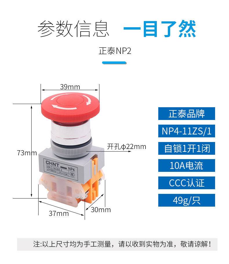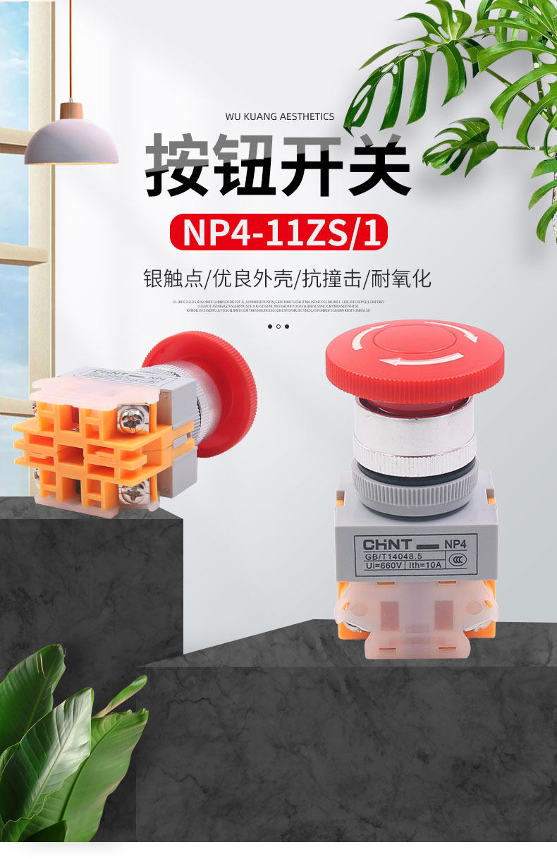 Аварийная кнопка с грибовидной головкой CHINT NP4-11ZS/1 самоблокирующаяся красная 22мм