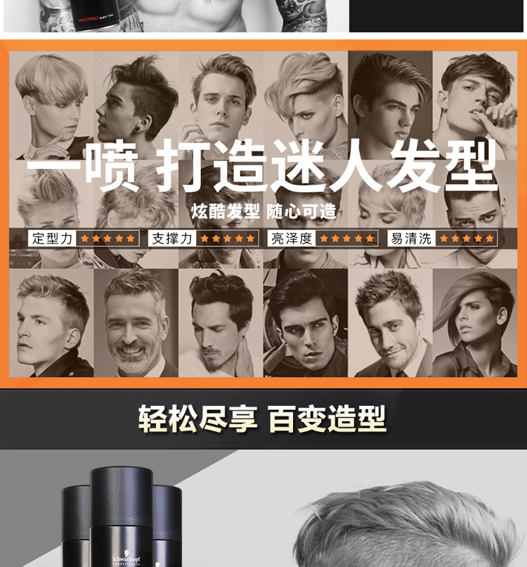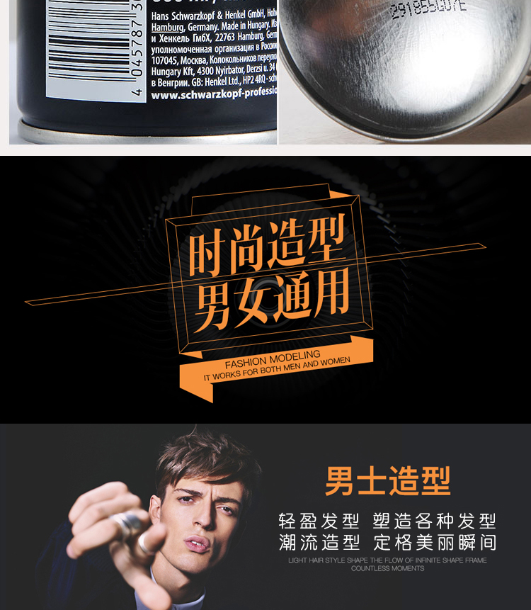 Лак для волос Schwarzkopf для мужчин и женщин - сильная фиксация, длительный эффект, свежий аромат, черный гель