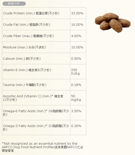 4.20%,Omega-3 0.30%,牛磺酸0.20%。