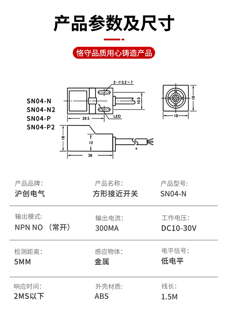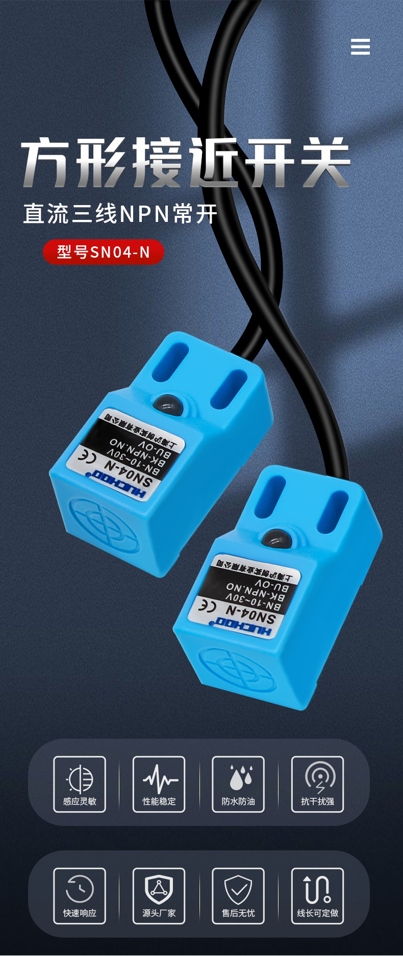 Квадратный водонепроницаемый металлический датчик приближения SN04-N/P/N2/P2/D двух- и трехпроводной с нормально открытым/закрытым контактом 24В