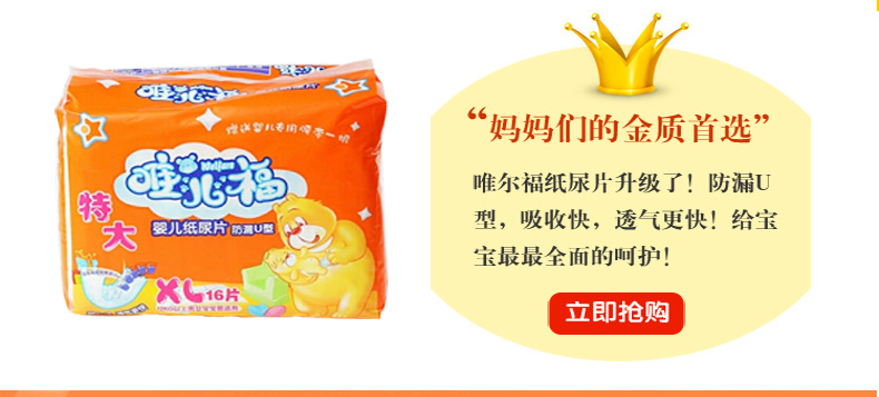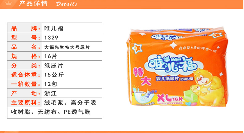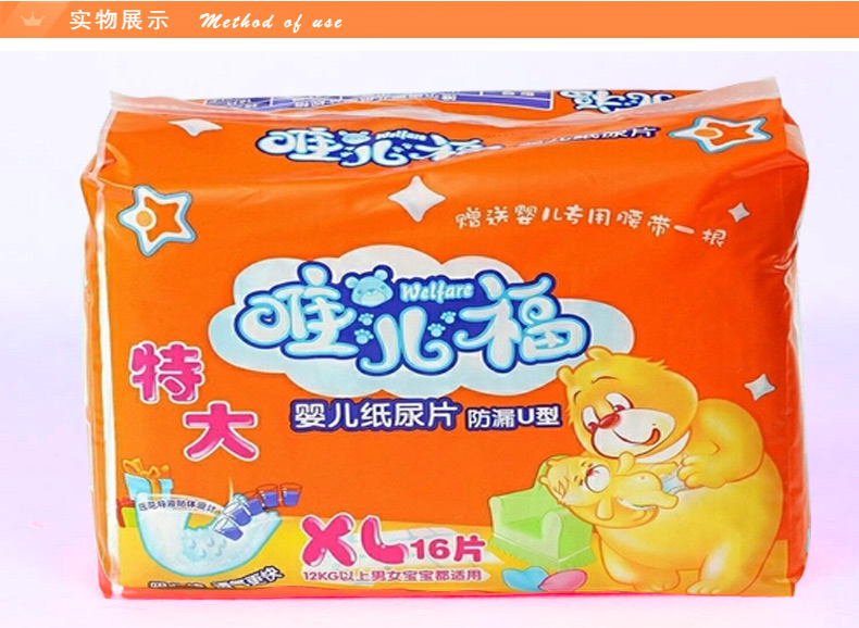 1329 Вейэрфу U-образные детские подгузники XL размера 16 шт с одной поясной лентой