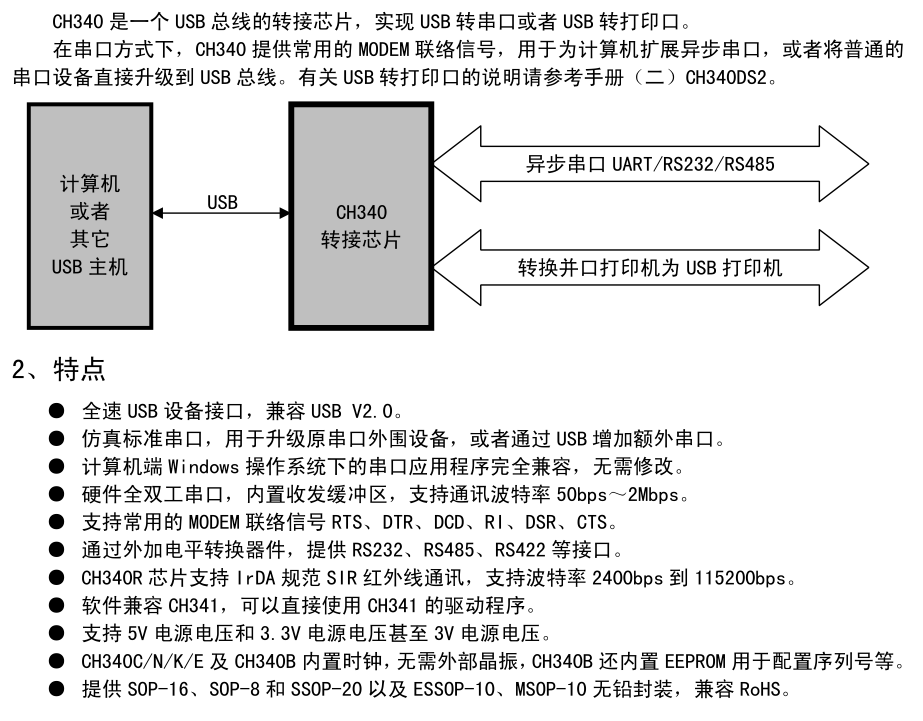 | Цветовые варианты | CH340G корпус SOP16, CH340C корпус SOP16, CH340N корпус SOP8, CH340K корпус ESSOP10, CH340T корпус SSOP20, CH340E корпус MSOP10, CH340B корпус SOP16, CH9340K корпус ESSOP10, CH9340C корпус SOP16, CH340X корпус MSOP10 |