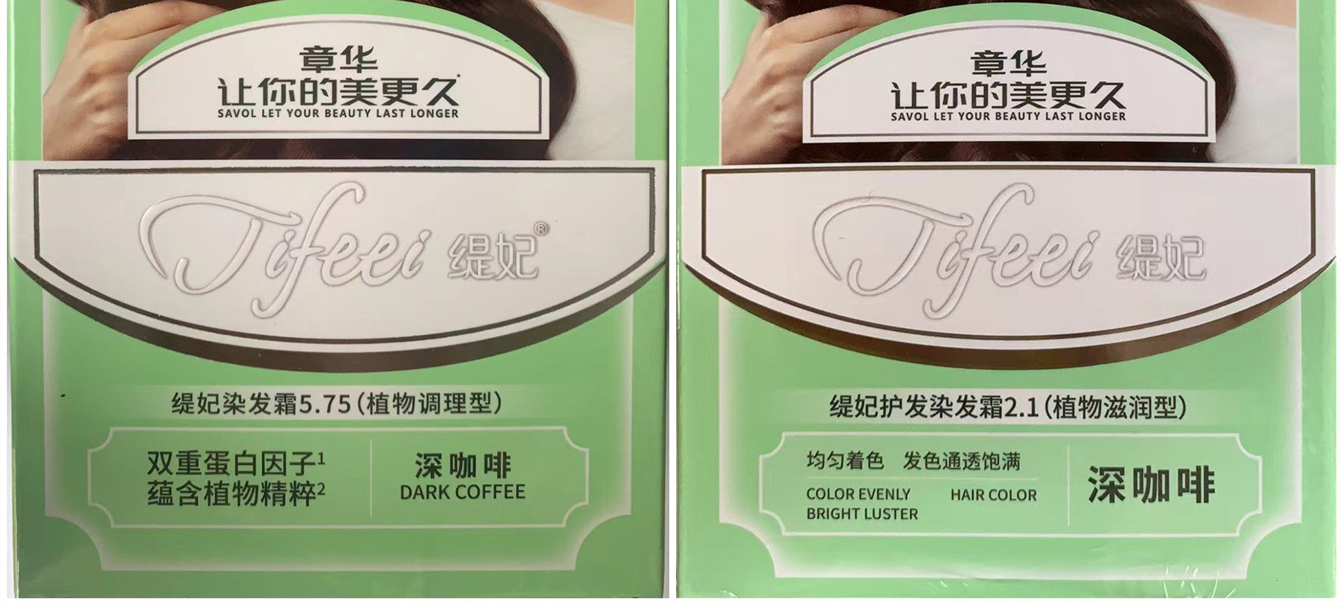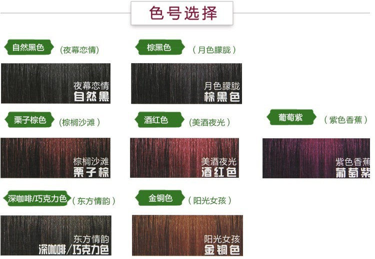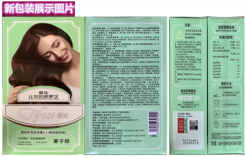 注:走货量大新老包装随机发。新包装正式改名为缇妃护发染发霜, 厂家把金棕色改名为炫棕色,葡萄紫改名为紫红色,配方不变,现深咖啡和栗子棕微改包装拍下均有实物图。