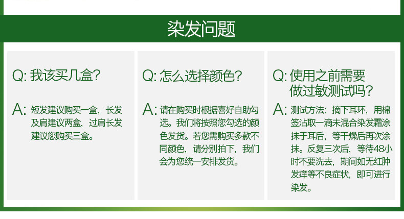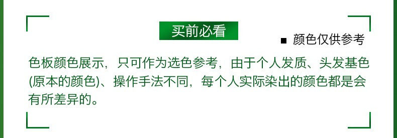 注意事项:本品适合及肩左右头发一次使用或短发者多次使用,头发过长或过密者适当增加用量,避免因剂量不足而造成的色差。