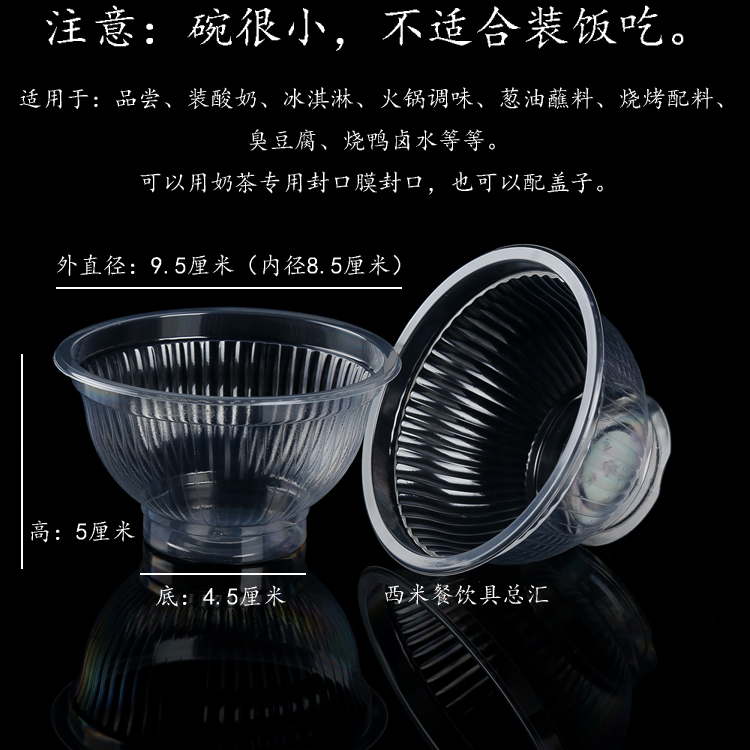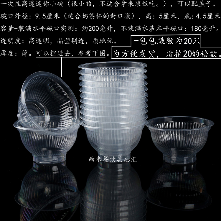 180 штук одноразовых пластиковых маленьких мисок с крышкой, 200 мл для соусов, фондю, барбекю, йогурта