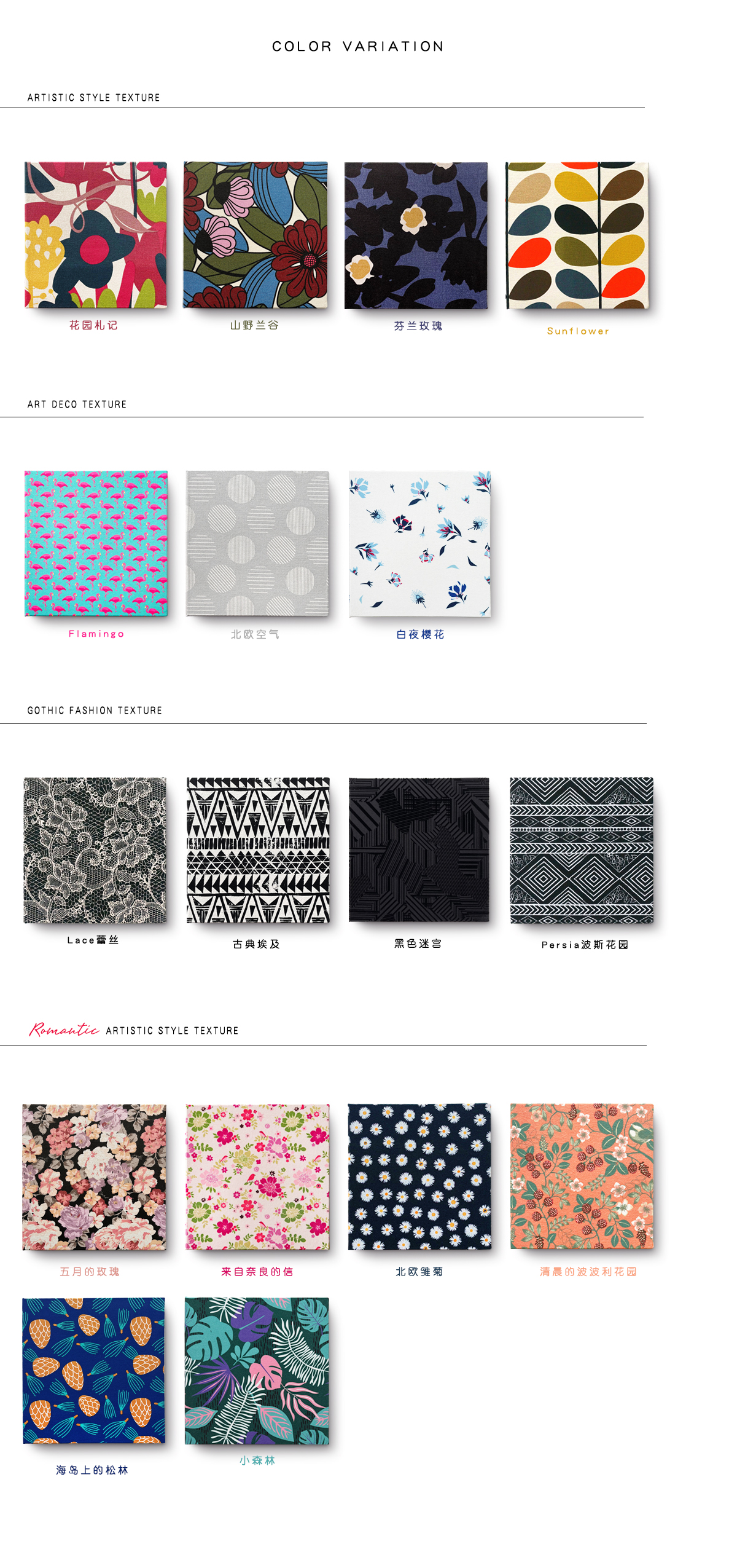 | Цветовые варианты | Сад Пополи на рассвете, Финская роза, Море маленького городка, Сад гранатов Мориса, Марокканский розовый сад, Дворец роз, Датская роза, Венецианский цитрус, Летняя сакура, Утро, Флоренция, Норвежский лес, Кувшинки в разгар лета, Лесной концерт, Прогулка по джунглям, Тюльпановый сад, Письмо из Нары, Белая ночная сакура, Долина горной орхидеи, Островная сосновая роща, Фламинго, Летняя история, Маленький лес, Заметки садовода (А), Заметки садовода (B), Заметки садовода (C), Подсолнух, Финский ромашка, Северный воздух, Кружева, Сад Персии, Классический Египет |