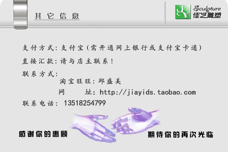 这是一款适用于花园,别墅,酒店走廊或室外等型场都可摆放的很高档的一款工品!做工精细,款式大方!是一款很高档很新颖的时尚工艺品!也是一款喜欢家饰的淘友们的不错选择!也可作赠送亲朋好友乔迁大喜的送礼佳品!