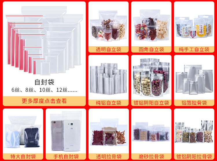 功能             5丝 7丝包装一次性用品 , 9丝 11丝包装食品 配件 干货 服装收纳  ,14丝 16丝包装硬一点高档一点产品,20丝包装海鲜干货 特产 出口产品,密封性好 全新料生产,食品级包装袋。