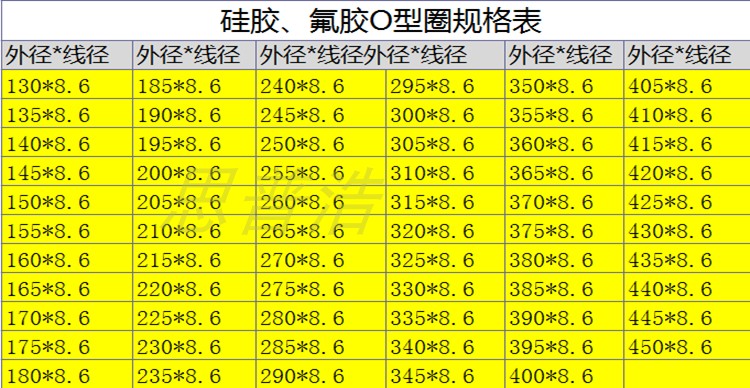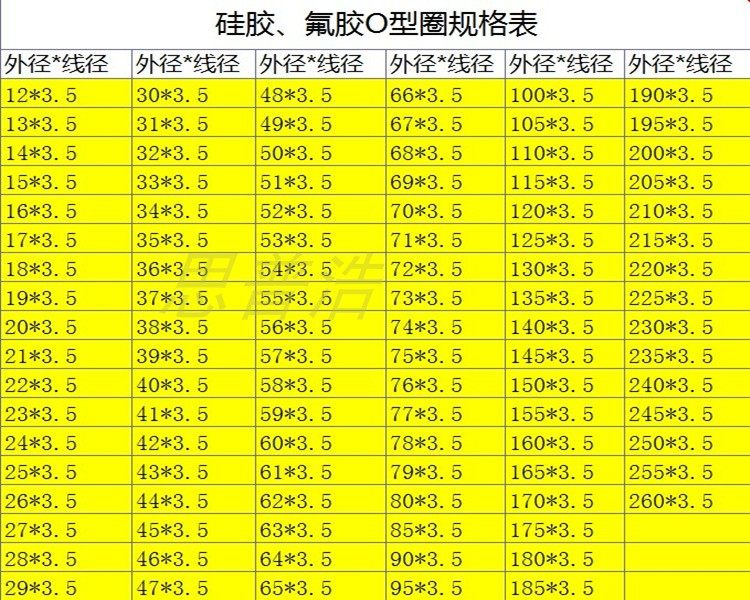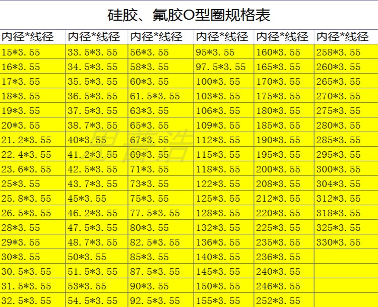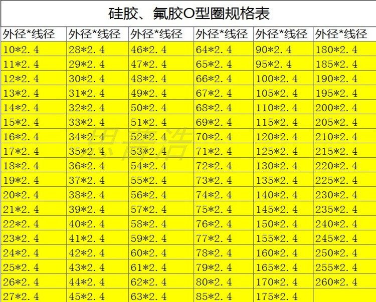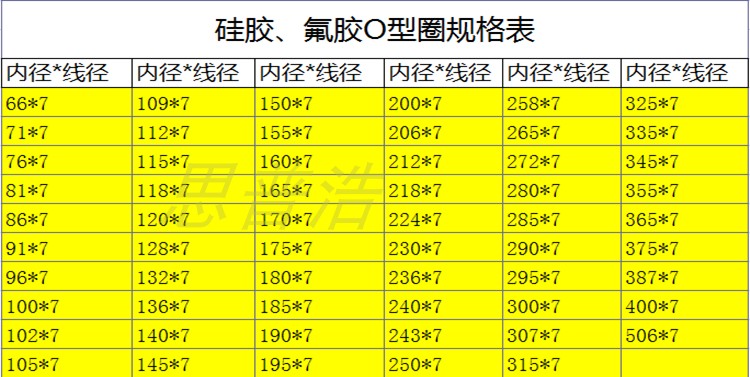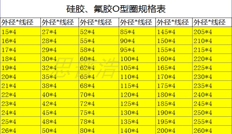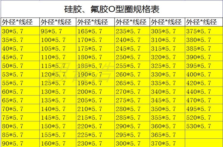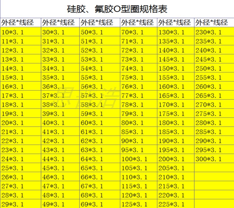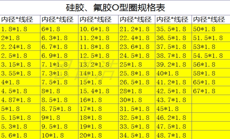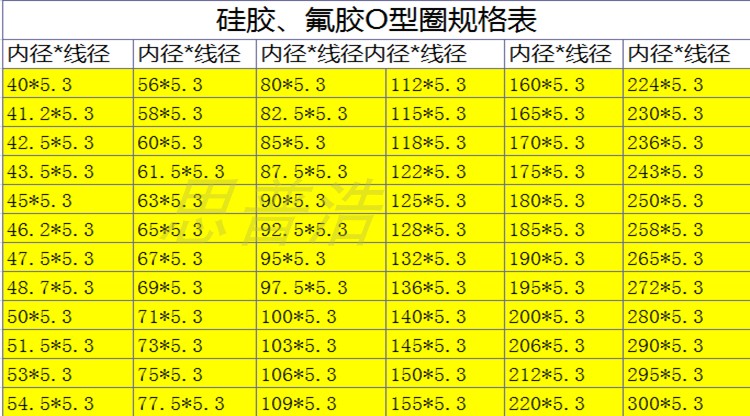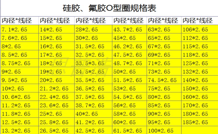 由于O型圈规格繁多,不能一一列出,请购买前量好尺寸,确认材料,必免出错而造成双方困扰.