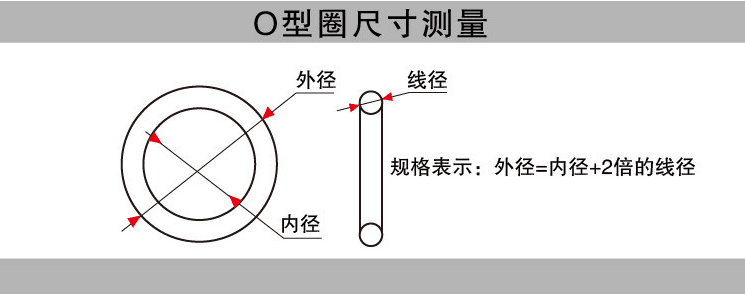 O型圈规格测量方法:外径*内径*线径 (单位:毫米) 外径=内径+两个线径