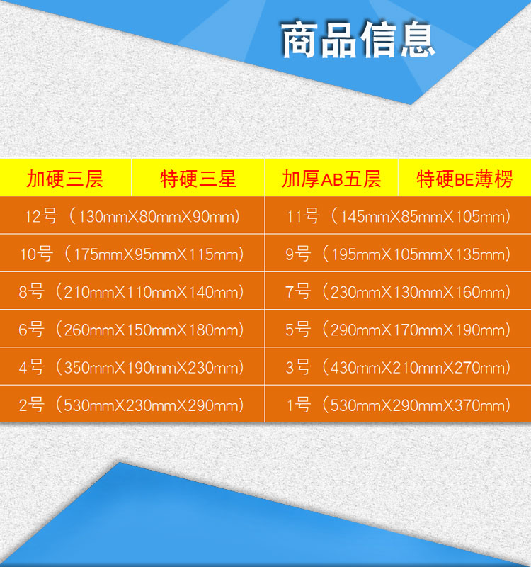 | Размер | №12: 13×8×9 см, №11: 14,5×8,5×10,5 см, №10: 17,5×9,5×11,5 см, №9: 19,5×10,5×13,5 см, №8: 21×11×14 см, №7: 23×13×16 см, №6: 26×15×18 см, №5: 29×17×19 см, №4: 35×19×23 см, №3: 43×21×27 см, №2: 53×23×29 см, №1: 53×29×37 см |