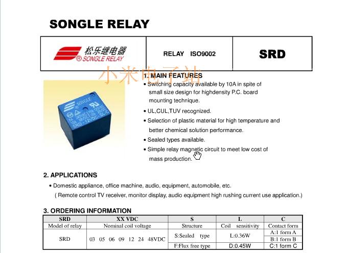 Реле Songle SRD-12VDC-SL-A -C 03V 05V 06V 09V 18V 24V 36V 48V