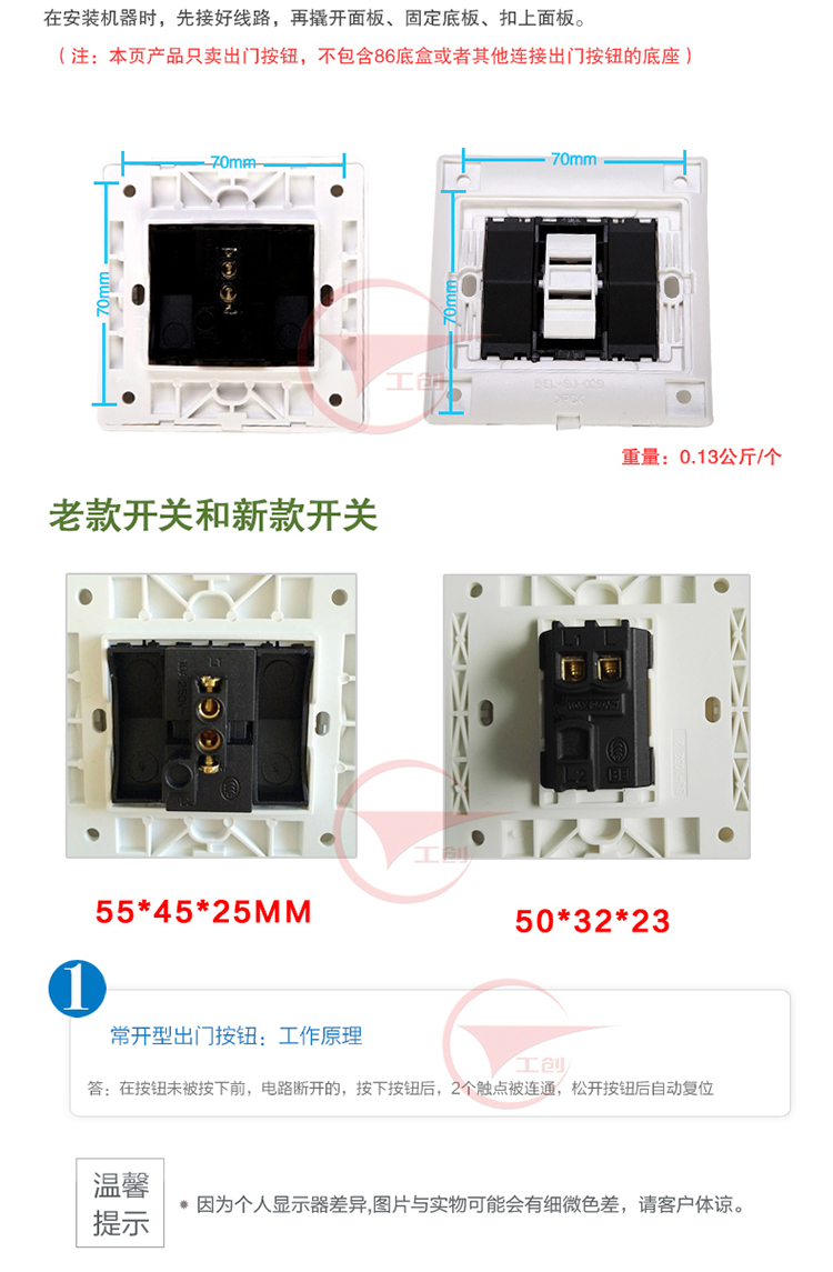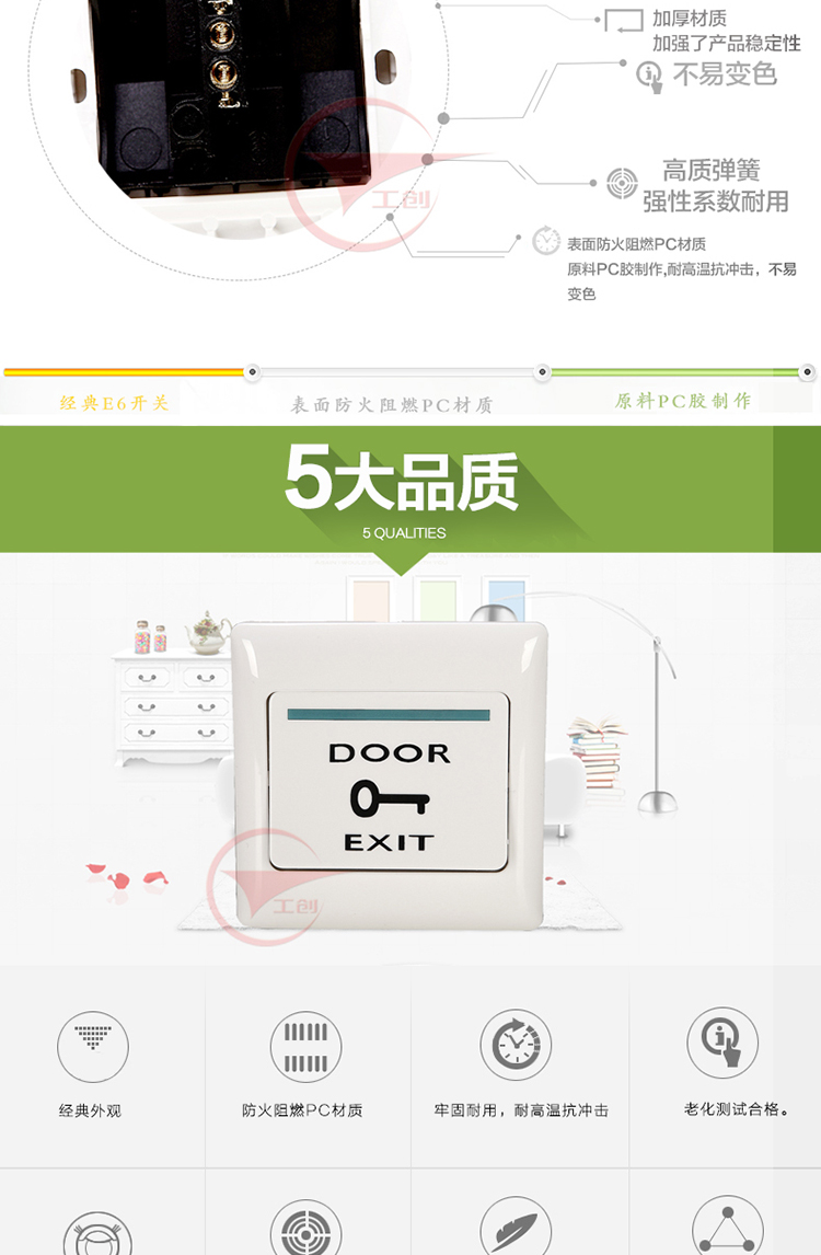 Новый переключатель E6 (нормально разомкнутый) с чёрным основанием, классический старый переключатель E6 (нормально разомкнутый), новый переключатель (нормально разомкнутый/нормально замкнутый), переключатель с малым основанием (нормально разомкнутый), большой рычажный переключатель (нормально разомкнутый), новый E6 переключатель (нормально разомкнутый) с малым основанием, пластиковый переключатель типа 86 с нижней коробкой (нормально разомкнутый), чёрный переключатель контроля доступа (нормально разомкнутый), белый пластиковый переключатель типа 86 (нормально разомкнутый), белый переключатель с большой панелью, золотой переключатель с большой панелью, серый переключатель с большой панелью, нержавеющий длинный полосовой переключатель, нержавеющий переключатель типа 86
