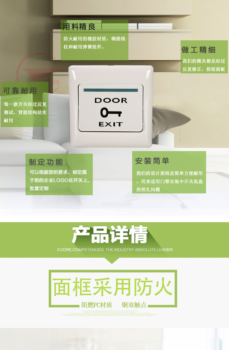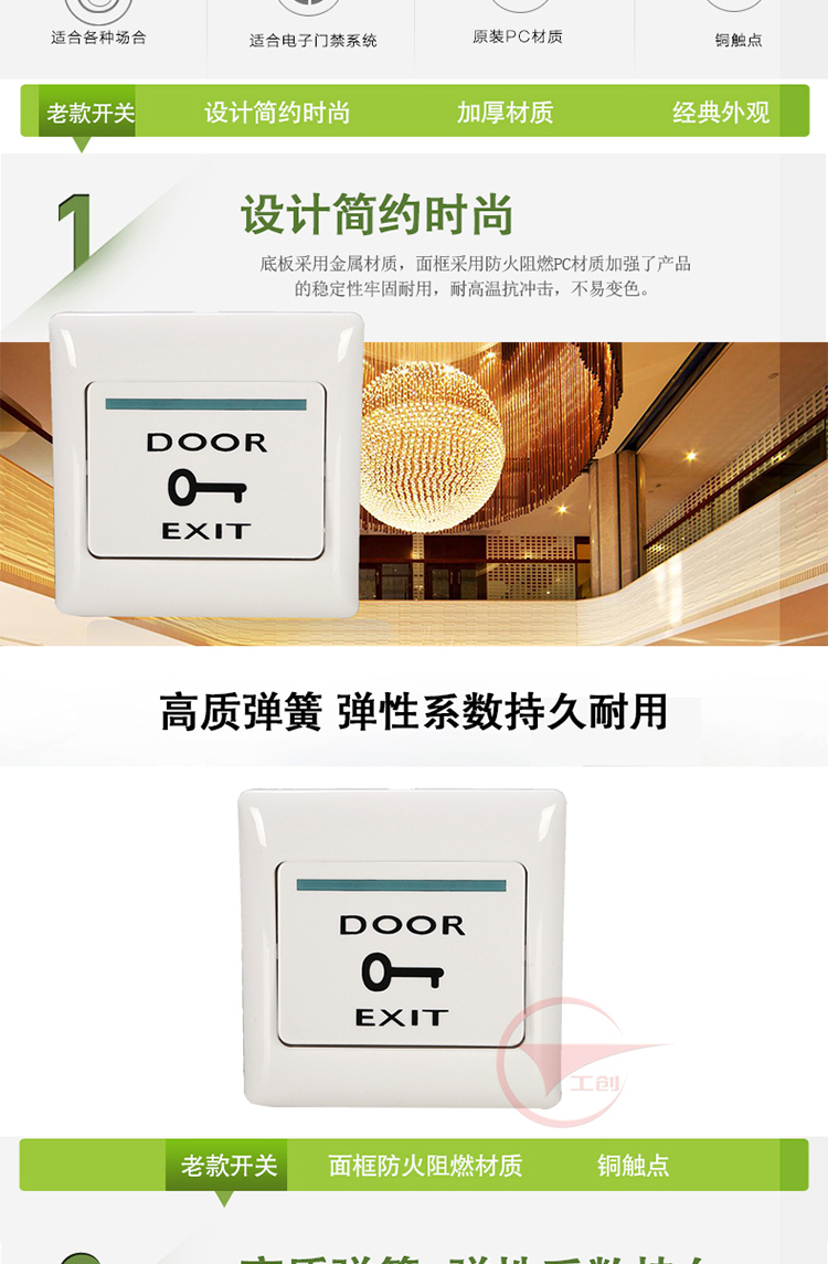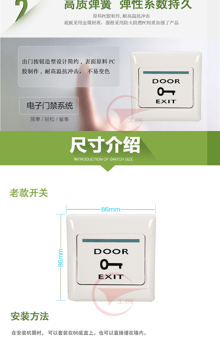 Кнопка выхода для дверного доступа Gongchuang тип 86 из нержавеющей стали, стабильная, прочная, черная и белая, с монтажной коробкой