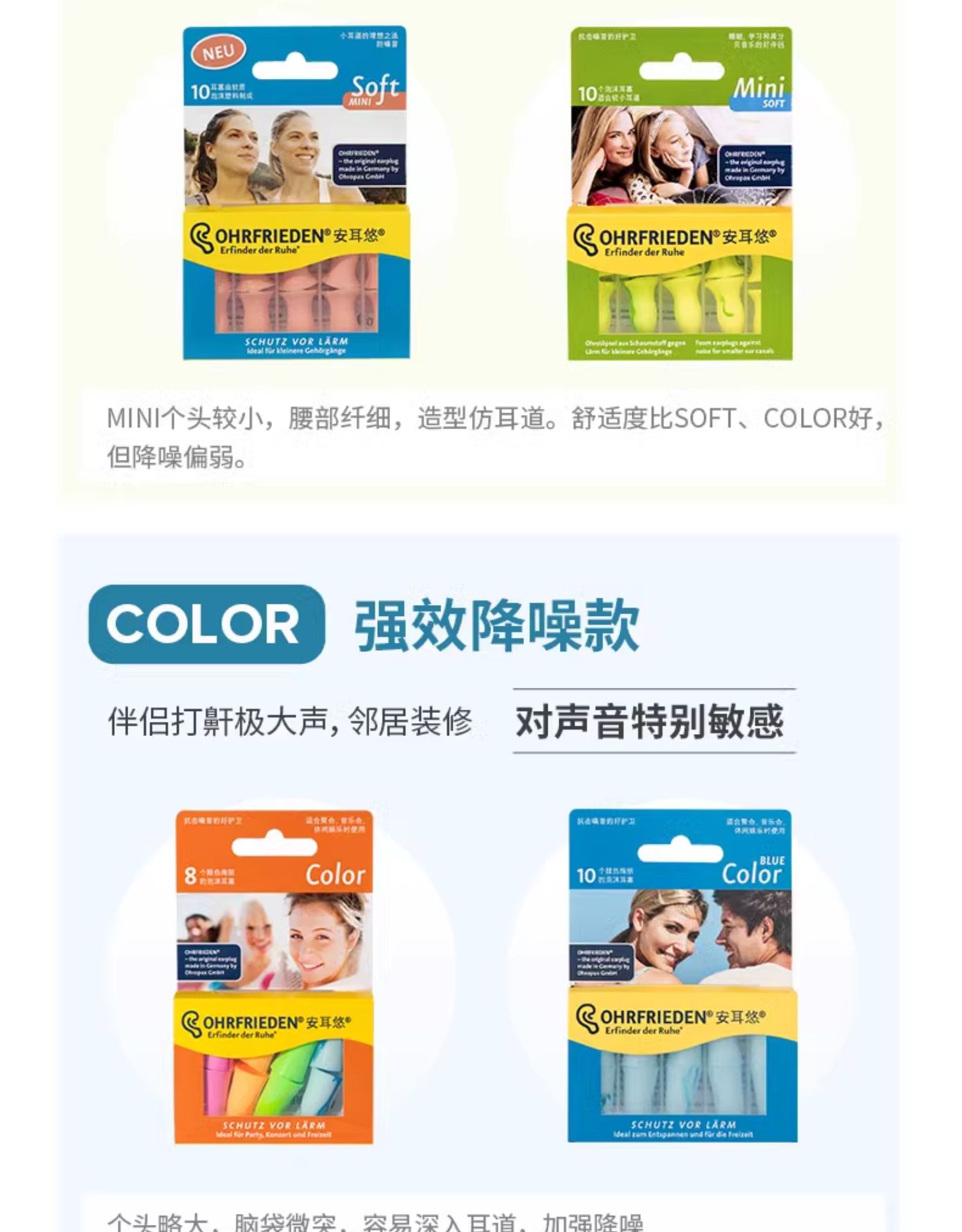 | Цветовые варианты | Оригинальный импорт в оригинальной коробке, гарантия подлинности; Классическая упаковка 1 пара; Мини 1 пара в аккуратной упаковке; Маска для сна с затемнением + 1 пара мягких оригинальных беруш в переносном кейсе; Soft Mini 5 пар (маленький, комфортный шумоподавитель); Классические 5 пар (подходят большинству); Классические 10 пар (подходят большинству); Мини 5 пар (комфортный маленький размер); Синие 5 пар (сильное шумоподавление); Синие 10 пар (сильное шумоподавление); Яркие 4 пары (сильное шумоподавление); Классические 2 пары + Мини 2 пары (разные размеры); Классические 2 пары (подходят большинству); Мини 2 пары (комфортный маленький размер); Классические 5 пар + маска для сна с затемнением (подходят большинству); Soft 5 пар бестселлер бежевого цвета + Mini 5 пар (комфортный маленький размер); Soft 5 пар бестселлер бежевого + синие 5 пар (сильное шумоподавление); Mini 5 пар (комфортный маленький) + Яркие 4 пары (сильное шумоподавление); Силиконовые беруши 3 пары (универсальные для взрослых) |