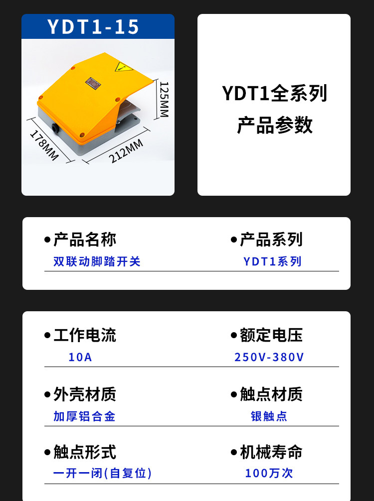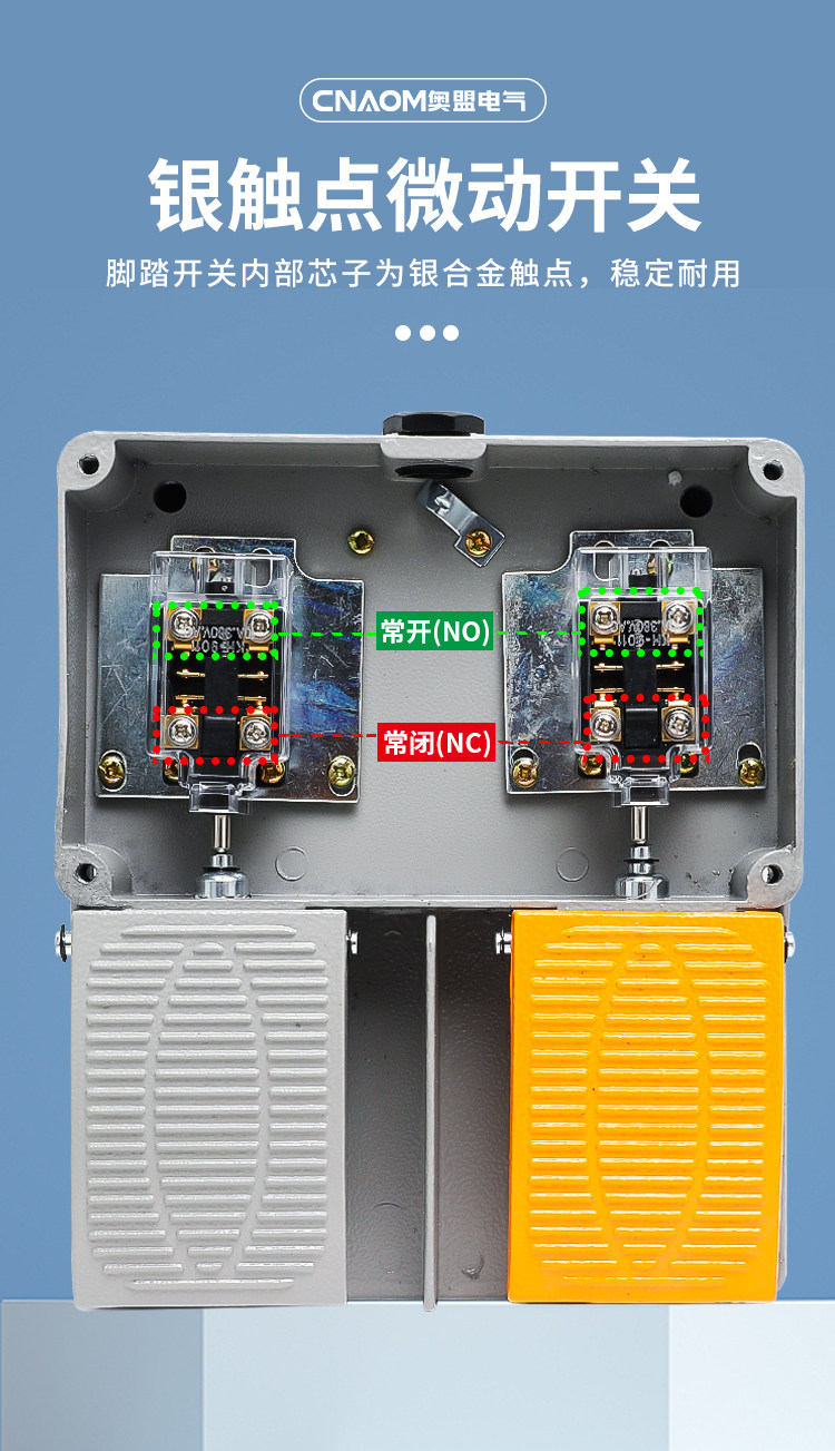 Педальный выключатель YDT1-18/15/16/17 двойной с двойной педалью, серебряные контакты, алюминиевый корпус для гибочных и листорезных станков