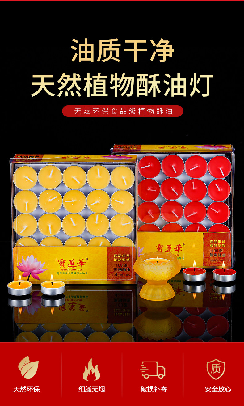 Лампа для подношения 4 часа 100 шт. свечи из чистого растительного масла для дома, длительного горения лампы для Будды