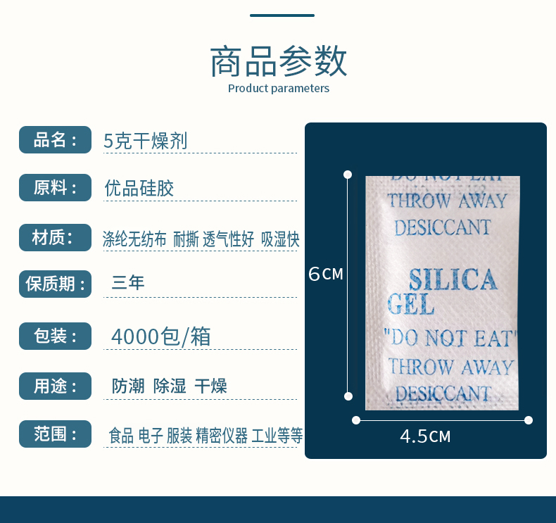 Силикагель 5 г с нетканым полотном для продуктов питания, электроники, металлоизделий, одежды и промышленности, влагопоглотитель