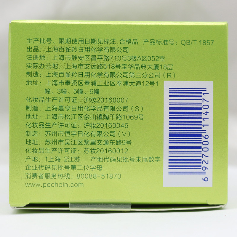 | Номер производственной лицензии | Шанхай Лицензия на производство косметики № 20160007 |