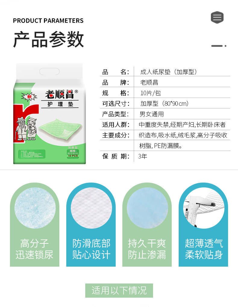 Взрослый защитный пелёнка Laoshunchang 80x90 увеличенный утолщённый медицинский пелёнка для родильниц и пожилых 60x90 с защитой от протеканий