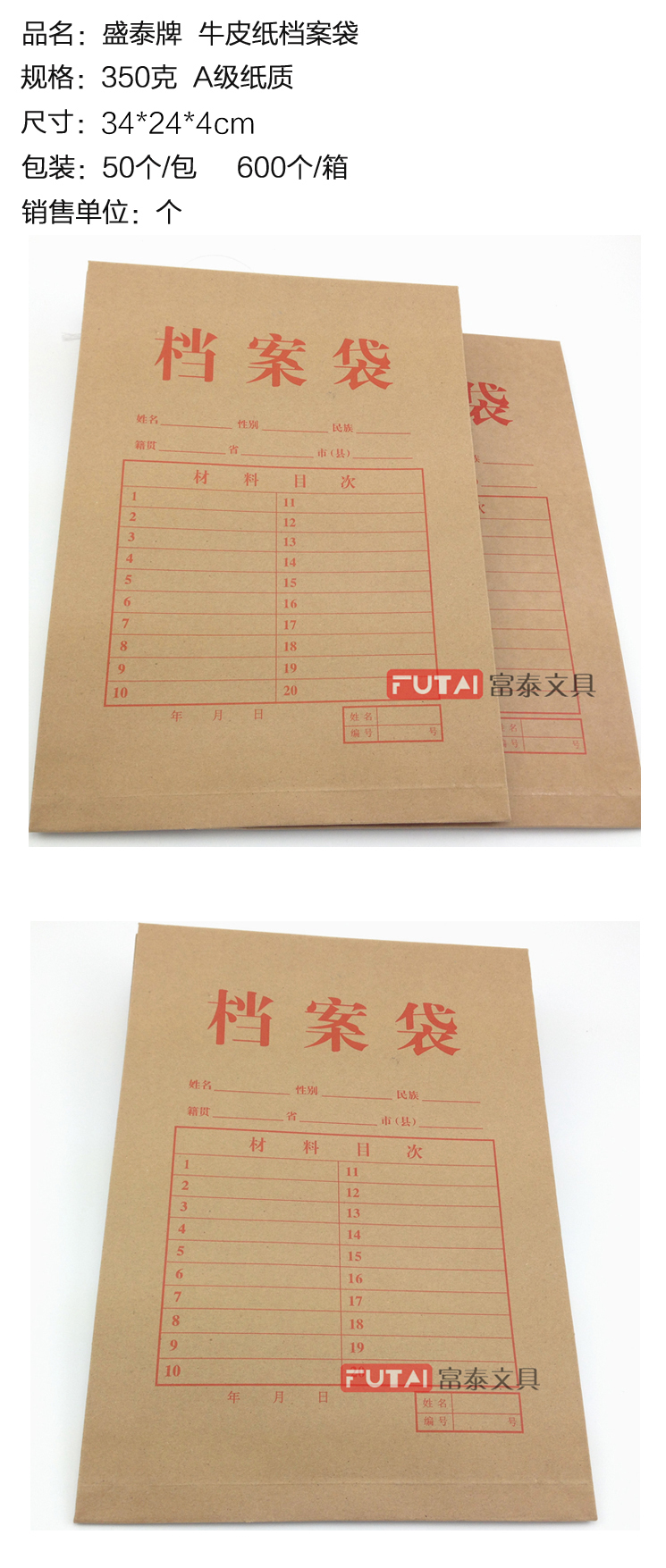Папка для документов Shengtai A4 350г из безкислотной бумаги Nine Dragons, утолщенная папка из крафт-бумаги класса А